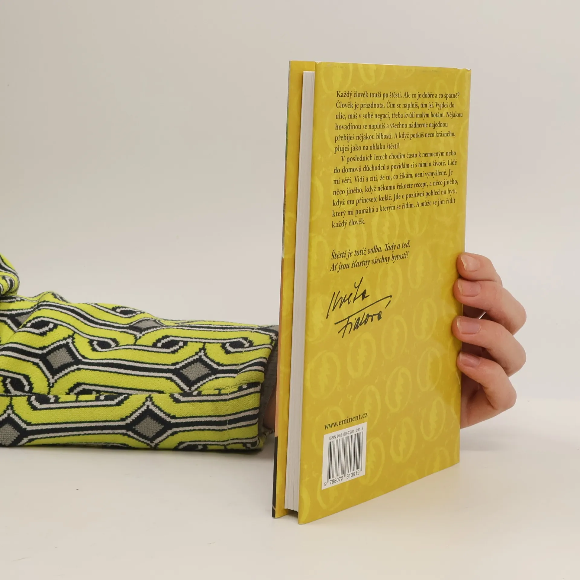 Každý člověk touží po štěstí. Ale co je dobré a co špatné? Člověk je prázdnota. Čím se naplníš, tím jsi. Vyjdeš do ulic, máš v sobě negaci, třeba kvůli malým botám. Nějakou hovadinou se naplníš a všechno nádherné najednou přebiješ nějakou blbostí. A když potkáš něco krásného, pluješ jako na oblaku štěstí! V posledních letech chodím často k nemocným nebo do domovů důchodců a povídám si s nimi o životě. Lidé mi věří. Vidí a cítí, že to, co říkám, není vymyšlené. Je něco jiného, když někomu řeknete recept, a něco jiného, když mu přinesete koláč. Jde o pozitivní pohled na bytí, který mi pomáhá a kterým se řídím. A může se jím řídit každý člověk. Štěstí je totiž volba. Tady a teď. Ať jsou šťastny všechny bytosti! To přeje vám i sobě Květa Fialová. Kniha je doplněna horoskopem od Pavla Turnovského.