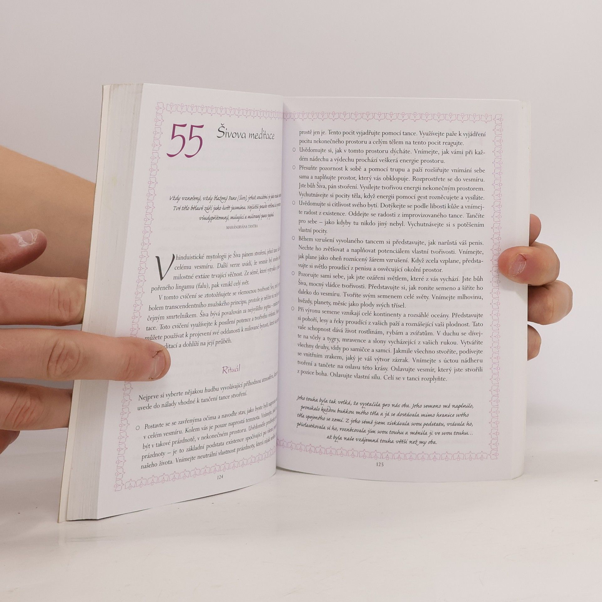 Tantra, tao lásky, je starobylá východní praktika osobního rozvoje. Srdcem této nauky je poznání, že mocné proudy energie protékají námi všemi a měly by být sladěny dohromady. Praktické techniky v této knize vám nejen ukážou, jak rozvíjet vaši sexuální energii a jak využívat její sílu k vnitřní transformaci, ale také pozvednou vaše milování na vyšší duchovní stupeň. Když se mysl i tělo sladí dohromady pomocí tantrického sexu, zlepší se komunikační dovednosti, osobní kreativita i spontánnost. Kniha vás provede sto a jednou nocí rituálů, tance, intimních dotyků, dýchání, vizualizací a meditací, aby vás přiblížila k vašemu sexuálnímu partnerovi a pomohla vám najít váš vlastní vnitřní zdroj extáze.