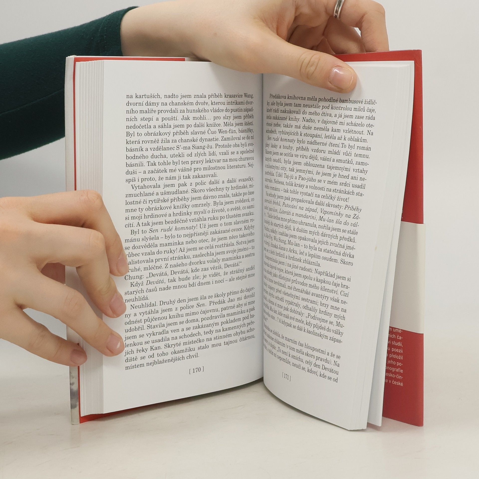 První scéna románu připomíná tzv. nankingský masakr: Japonská armáda na přelomu let 1937 / 1938 obsadila část Číny a v této oblasti během několika měsíců zavraždila na 300 tisíc lidí… Hrdinkou a vypravěčkou je tehdy pětiletá dívka Skořicová, jedna z dcer z bohaté rodiny Li. Román je z valné části popisem útěku před japonskou armádou do náhradních bytů či domů… Otec odešel s konkubínou, protože žena mu nedala dědice. Chytrá a statečná matka se s dcerami probíjí okupovanou Čínou a dostávají to ze všech stran: od mužů, od bohatých, od starších… Kronika, odehrávající se na zlomu dvou epoch: na jedné straně tisíciletá tradice, na druhé straně vliv „moderní doby“ - mladé ženy už nerespektují své otce či starší, berou život do vlastních rukou. A někde poblíž, nepozorovaně zuří válka - a dá o sobě krutě vědět.