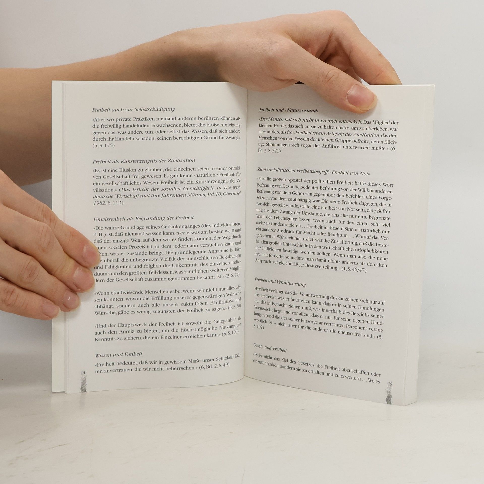 Dieses Brevier enthält die Kernideen aus Hayeks ökonomischem und sozialphilosophischem Werk. Im Mittelpunkt steht seine bekannte Theorie der spontanen Ordnung mit den Elementen Freiheit, Eigentum und „Wettbewerb als Entwicklungsverfahren“. Von dieser Theorie her wird dann gezeigt, dass die Zwangsordnung von Sozialismus und Wohlfahrtsstaat evolutorisch keine Chancen haben, wenn die Höhe der modernen Zivilisation erhalten bleiben soll.