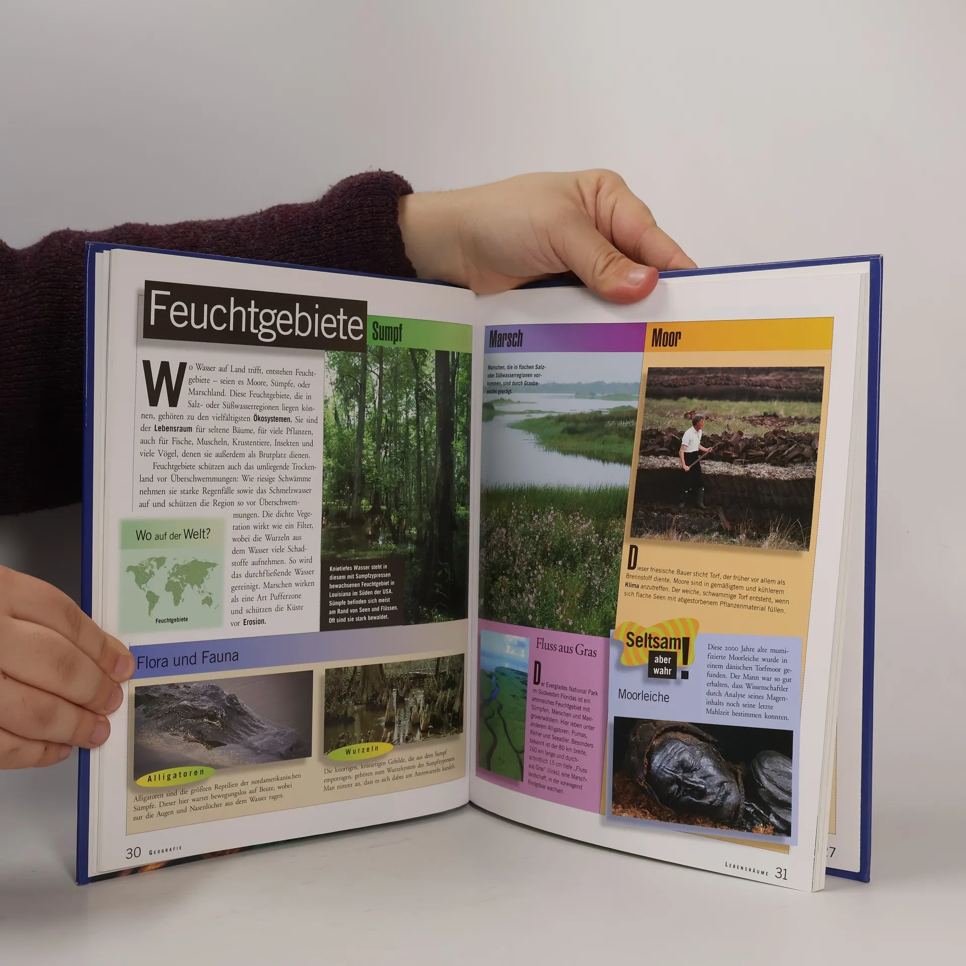 Vorgestellt werden die verschiedenen Lebensräume wie Feuchtgebiete, Wälder, Grasland, Wüsten, Regenwald, Kontinente und deren wichtigsten Eigenschaften; reich illustriert.