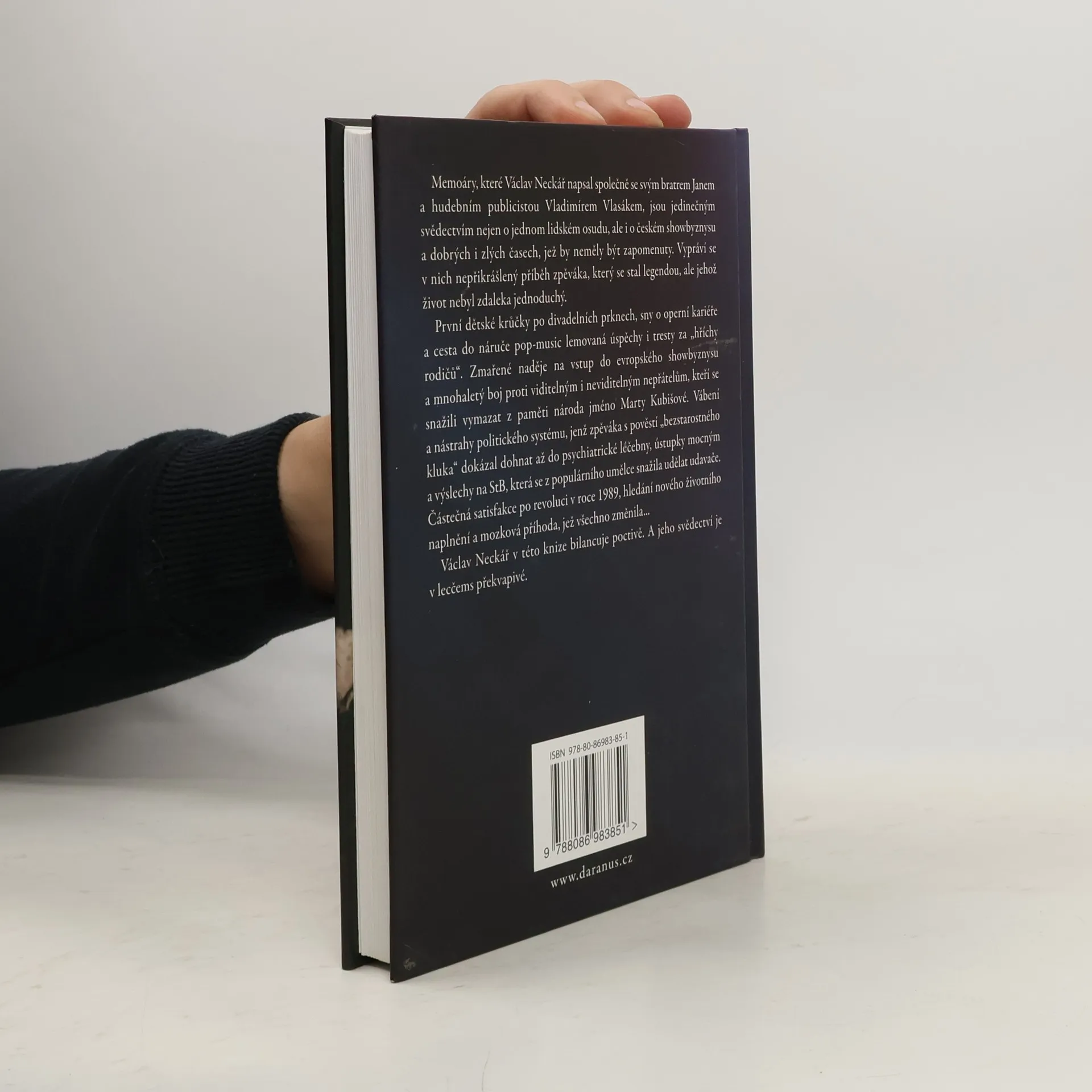 Václav Neckář není jen legenda české pop-music, ale také muž s nebezpečnou, takřka rainmanovskou pamětí. Uchovává v hlavě neuvěřitelné množství dat, jmen, telefonních čísel, a především událostí, které vždy dokázal komentovat s brilancí vypravěče dumasovského ražení. V roce 2002 prodělal mozkovou příhodu, jež naštěstí všechna ta data, jména a události nevymazala, jen je uzamkla ve Václavově mozku jako v černé skříňce. Když se pokoušel vyprávět, těžce hledal slova, artikulovat myšlenky mu občas pomáhal bratr Jan. A tehdy přišel nápad napsat tuhle knížku. Vznikala několik let. Během nich se hudební publicista Vladimír Vlasák setkával s Václavem i jeho bratrem Janem, naslouchal jejich vyprávění a zároveň pátral v archivech. Výsledkem jsou jedinečné memoáry, v nichž je zpěvákův pohled na sebe sama konfrontován s hlasy té které doby a lidí, kteří ho během kariéry provázeli. Je to unikátní svědectví nejen o jednom lidském osudu, ale i o českém showbyznysu a dobrých i zlých časech, jež by neměly být zapomenuty. Kniha je doprovozena bohatou fotografickou výbavou.