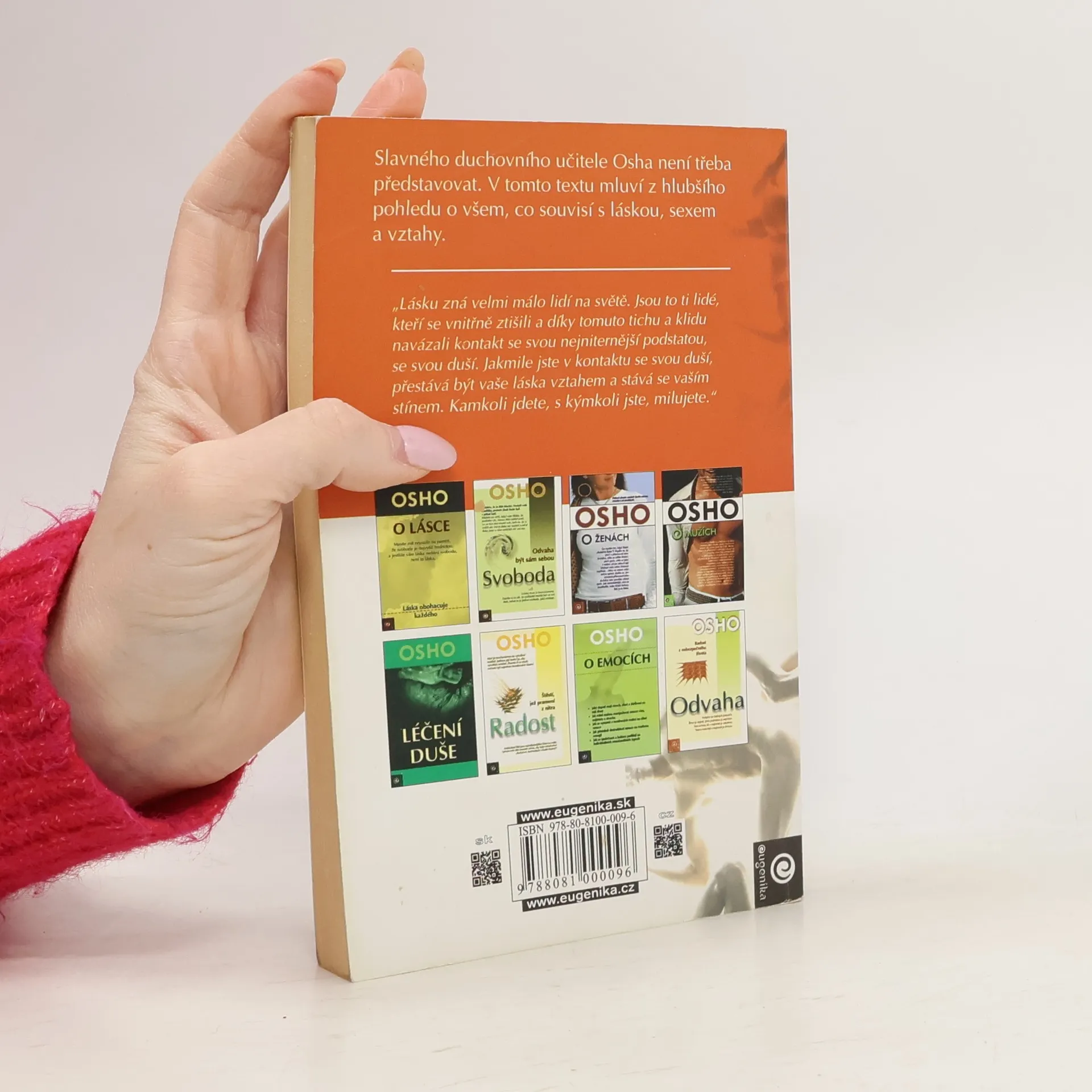 Slavného duchovního učitele Osha není třeba představovat. V tomto textu mluví z hlubšího pohledu o všem, co souvisí s láskou a vztahy mezi lidmi. Jestliže si musím vybrat mezi slovy láska a Bůh, zvolím lásku, zapomenu vše o Bohu, protože ti, kdo znají lásku, znají Boha. Obráceně to však neplatí: ti, kdo přemýšlejí o bohu a filozofují o něm, možná nikdy nepoznají lásku - a nikdy nepoznají Boha.
