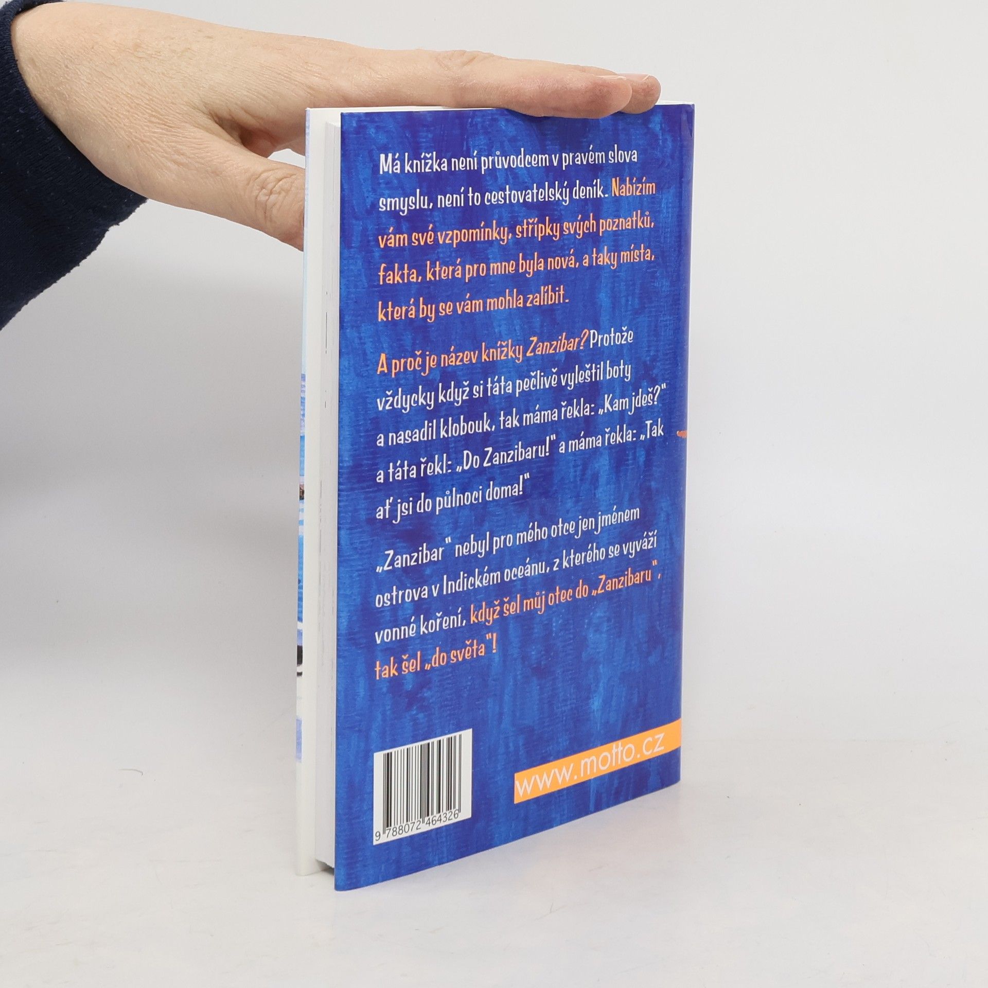 Knižní podoba cestopisných reportáží, které byly vysílány před několika lety v České televizi Má knížka není průvodcem v pravém slova smyslu, není to cestovatelský deník. Nabízím vám své vzpomínky, střípky svých poznatků, fakta, která pro mne byla nová, a taky místa, která by se vám mohla zalíbit. A proč je název knížky Zanzibar? Protože vždycky, když si táta pečlivě vyleštil boty a nasadil klobouk, tak máma řekla: „Kam jdeš?“ a táta řekl: „Do Zanzibaru!“ a máma řekla: „Tak ať jsi do půlnoci doma!“ „Zanzibar“ nebyl pro mého otce jen jménem ostrova v Indickém oceánu, z kterého se vyváží vonné koření, když šel můj otec do „Zanzibaru“, tak šel „do světa“!