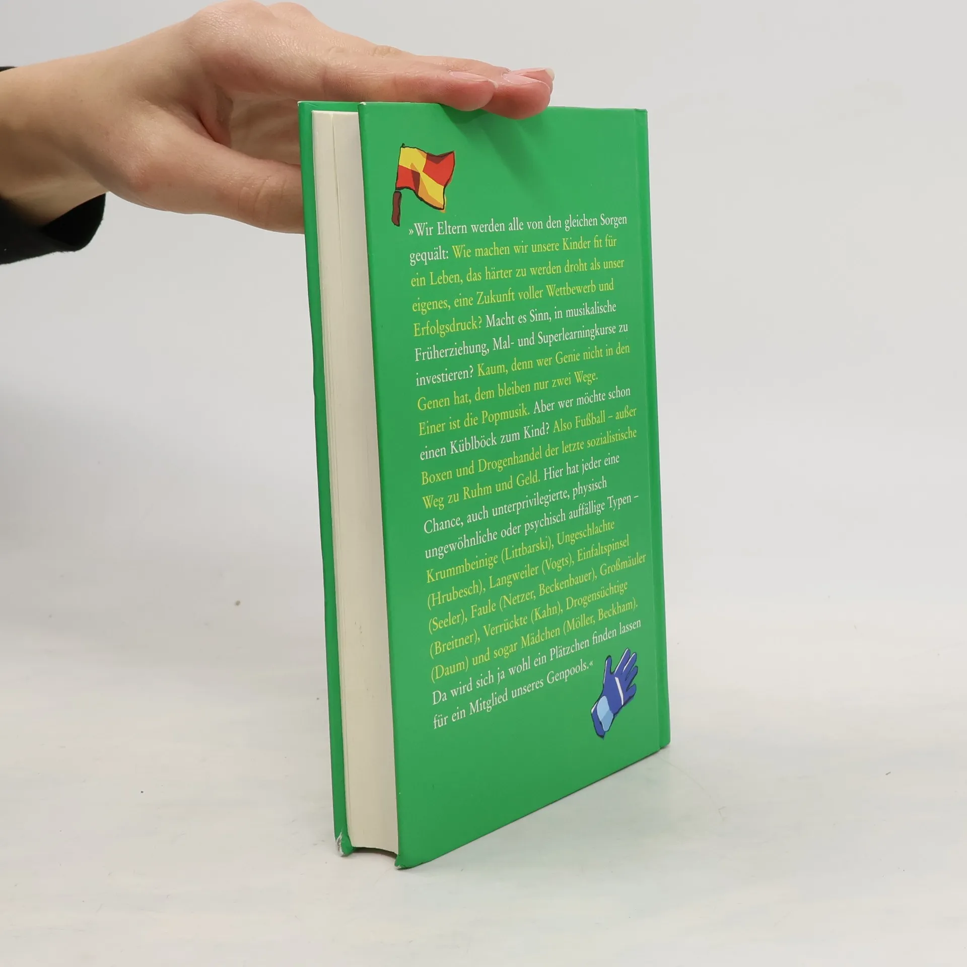 Ein Fußballtraining für Vater, Mutter, Kind Hajo Schumacher kennt die Welt der Kicker, dieses geheimnisvolle Paralleluniversum und seine Regeln, die weit komplizierter sind als Abseits. Er führt in Sprache und Denken des Fußballers ein, informiert über Tricks und Gepflogenheiten, warnt vor Fehlern und Fallen: Warum man sein Kind nicht im brasilianischen Nationaltrikot zum ersten Training schicken sollte ? Wieso am Spielfeldrand tobende Eltern ihren Kindern keinen Gefallen tun ? Wie man verlieren lernt, ohne zu heulen ? Was ein echter Fußballer isst, trinkt, und wann er ins Bett muss ? Ob sich teure Feriencamps lohnen ? Wann man idealerweise mit dem Interview-Training beginnen sollte ?