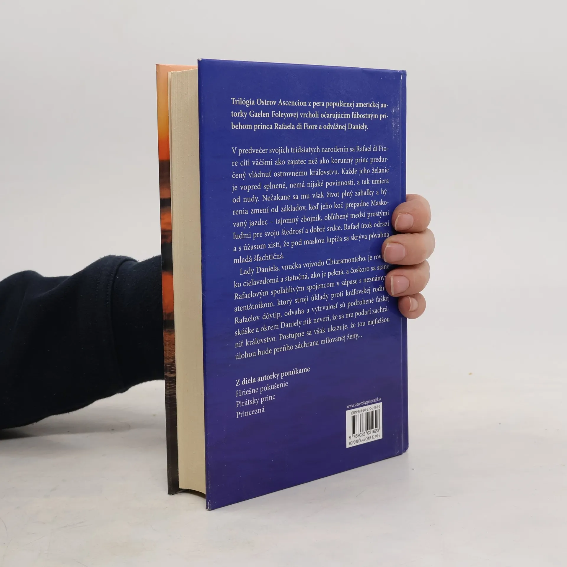 Trilógia Ostrov Ascencion z pera populárnej americkej autorky Gaelen Foleyovej vrcholí očarujúcim ľúbostným príbehom princa Rafaela di Fiore a odvážnej Daniely. V predvečer svojich tridsiatich narodenín sa Rafael di Fiore cíti väčšmi ako zajatec než ako korunný princ predurčený vládnuť ostrovnému kráľovstvu. Každé jeho želanie je vopred splnené, nemá nijaké povinnosti,a tak umiera od nudy. Nečakane sa mu však život plný záhaľky a hýrenia zmení od základov, keď jeho koč prepadne Maskovaný jazdec- tajomný zbojník, obľúbený medzi prostými ľuďmi pre svoju štedrosť a dobré srdce. Rafael útok odrazí a s úžasom zistí, že pod maskou lupiča sa skrýva pôvabná mladá Šľachtičná. Lady Daniela, vnučka vojvodu Chiaramonteho,je rovnako cieľavedomá a statočná,ako je pekná,a čoskoro sa stane Rafaelovým spoľahlivým spojencom v zápase s neznámym atentátnikom, ktorý stojí úklady proti kráľovskej rodine. Rafaelov dôvtip,odvaha a vytrvalosť sú podrobené ťažkej skúške a okrem Daniely nik neverí, že sa mu podarí zachrániť kráľovstvo. Postupne sa však ukazuje, že tou najťažšou úlohou bude preňho záchrana milovanej ženy...