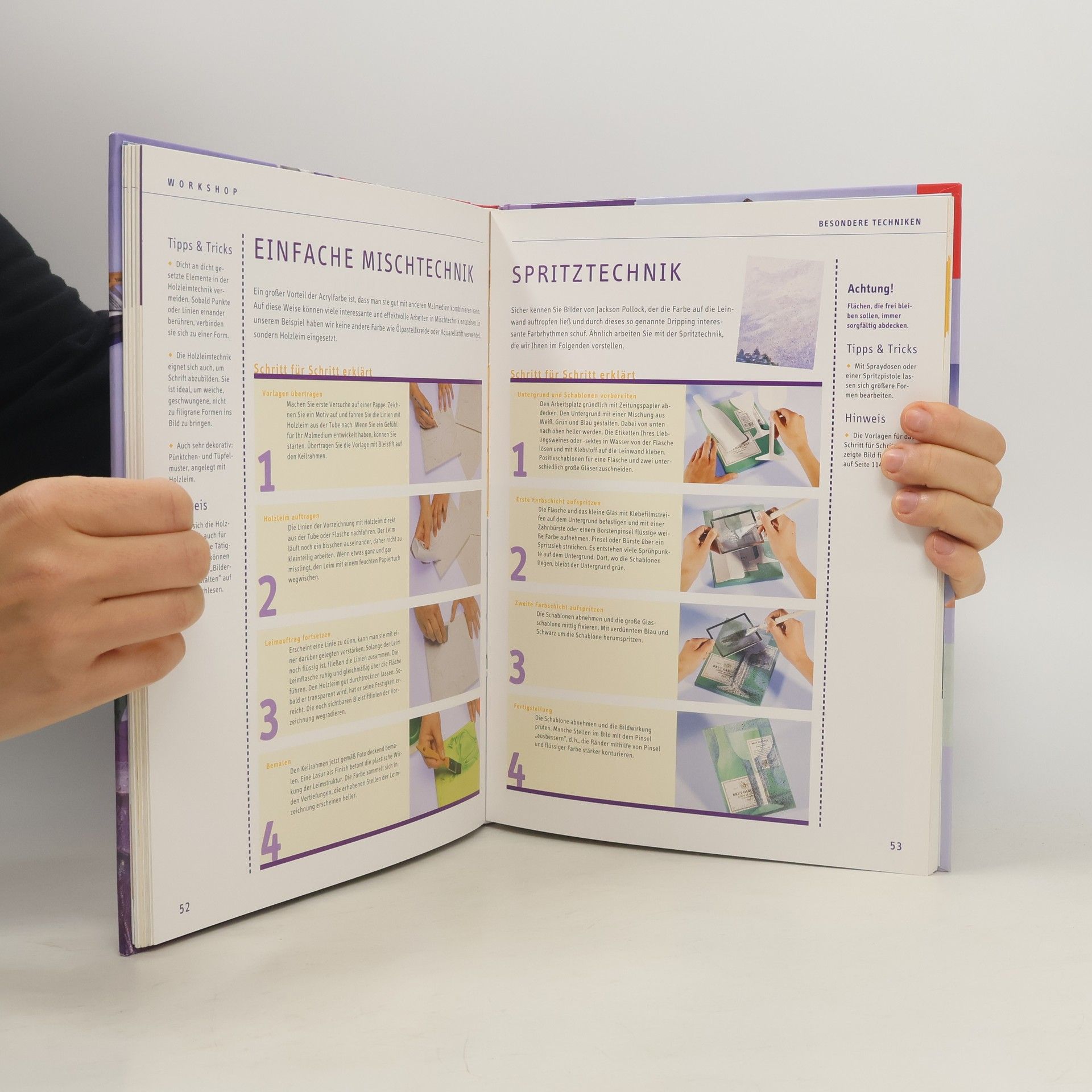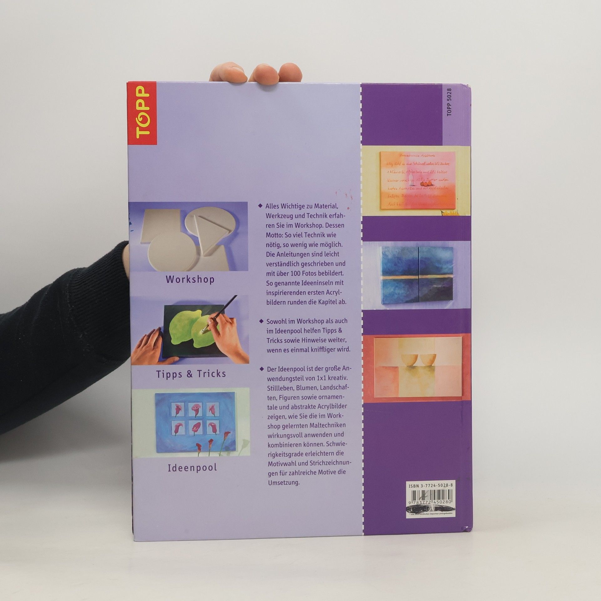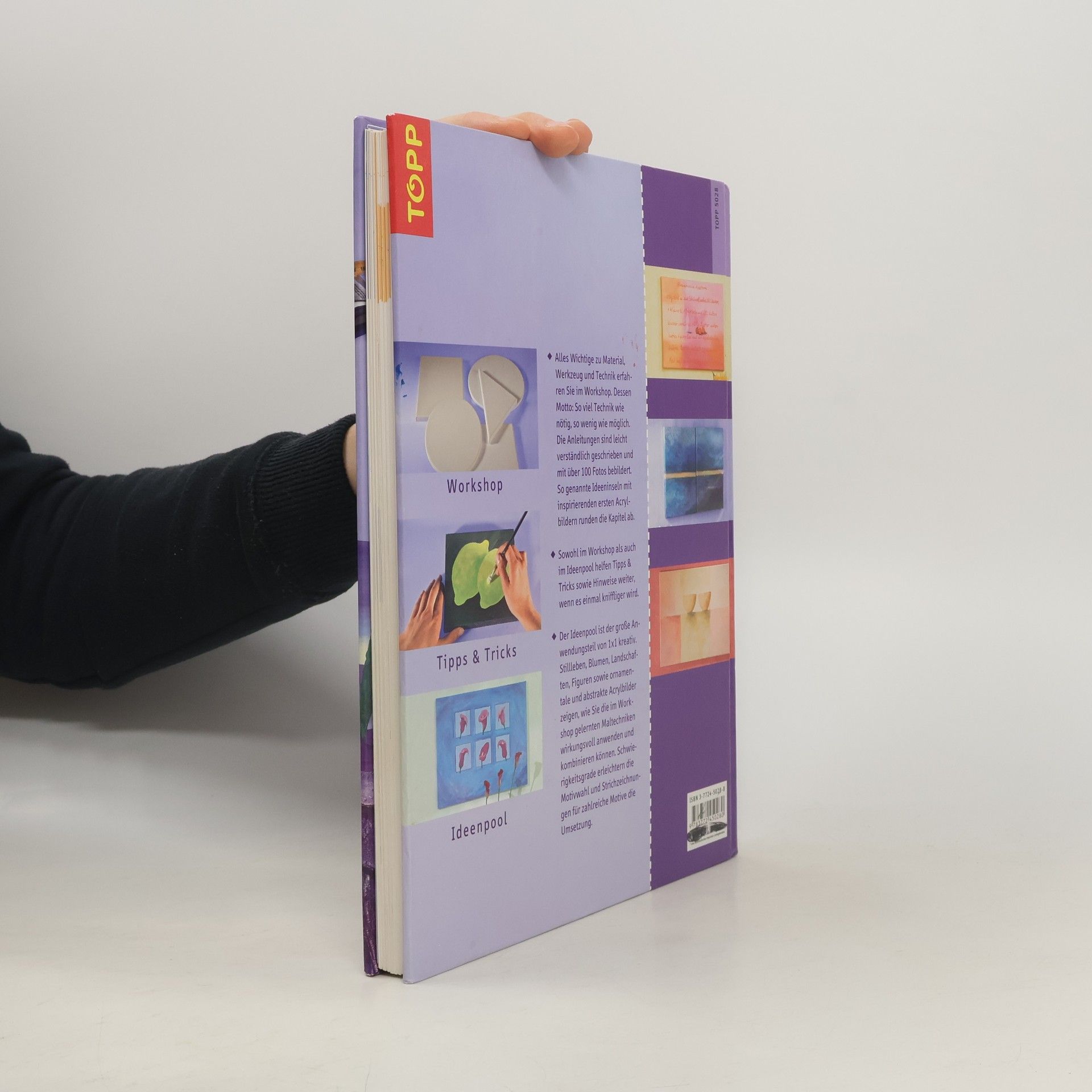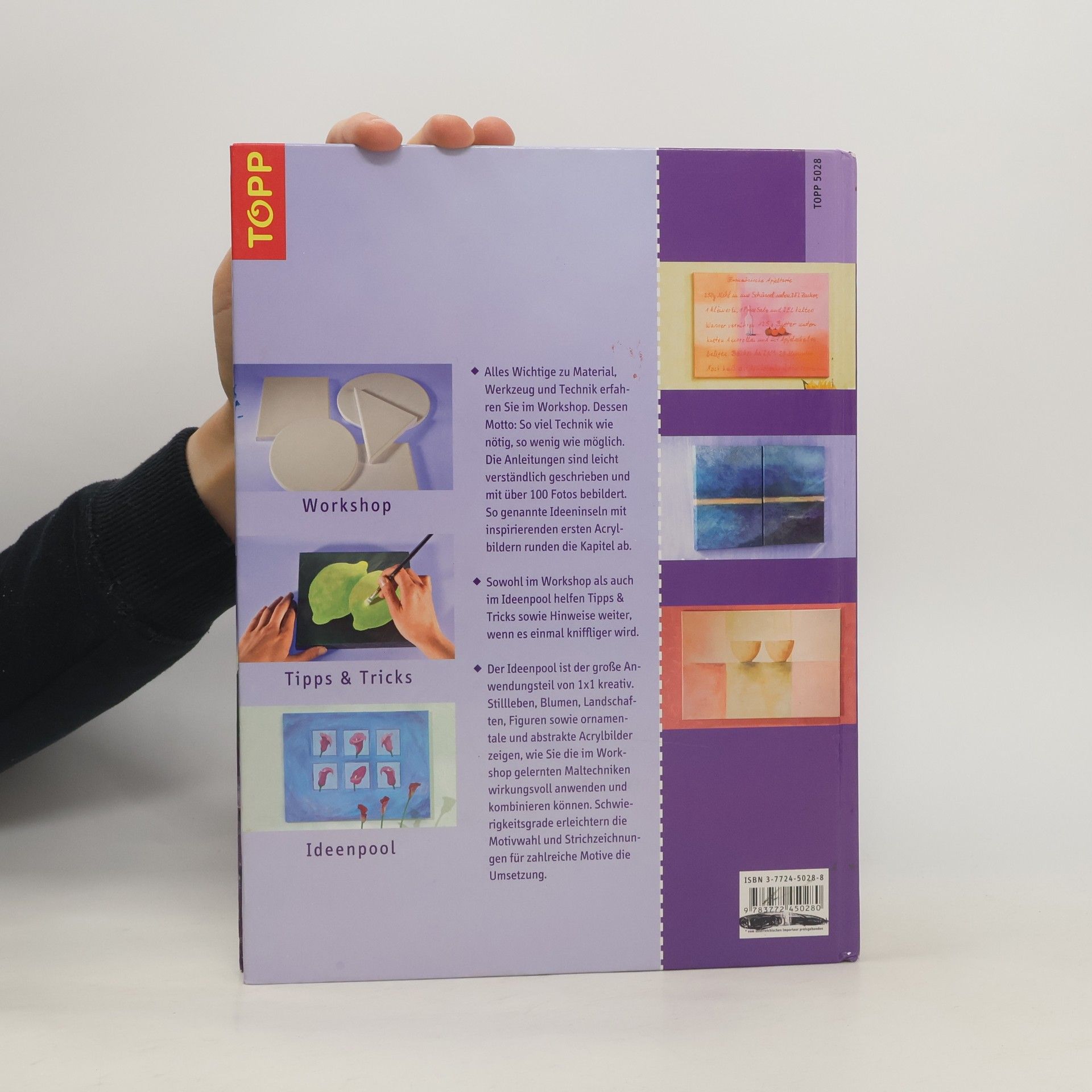 Handbuch, das Einsteiger umfassend in das dekorative Malen mit Acrylfarben einführt. Mit Materialkunde und Motivvorlagen, zu denen es als Hilfe Strichzeichnungen mit Raster gibt.