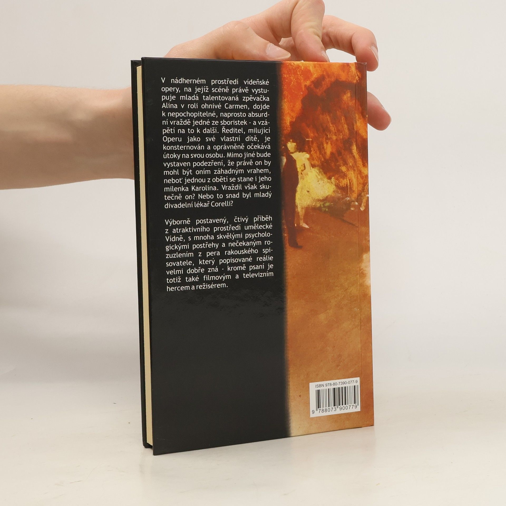 V nádherném prostředí vídeňské opery, na jejíž scéně právě vystupuje mladá talentovaná zpěvačka Alina v roli ohnivé Carmen, dojde k nepochopitelné, naprosto absurdní vraždě jedné ze sboristek - a vzápětí na to k další. Ředitel, milující Operu jako své vlastní dítě, je konsternován a oprávněně očekává útoky na svou osobu. Mimo jiné bude vystaven podezření, že právě on by mohl být oním záhadným vrahem, neboť jednou z obětí se stane i jeho milenka Karolina. Vraždil však skutečně on? Nebo to snad byl mladý divadelní lékař Corelli? Výborně postavený, čtivý příběh z atraktivního prostředí umělecké Vídně, s mnoha skvělými psychologickými postřehy a nečekaným rozuzlením z pera rakouského spisovatele, který popisované reálie velmi dobře zná - kromě psaní je totiž také filmovým a televizním hercem a režisérem.