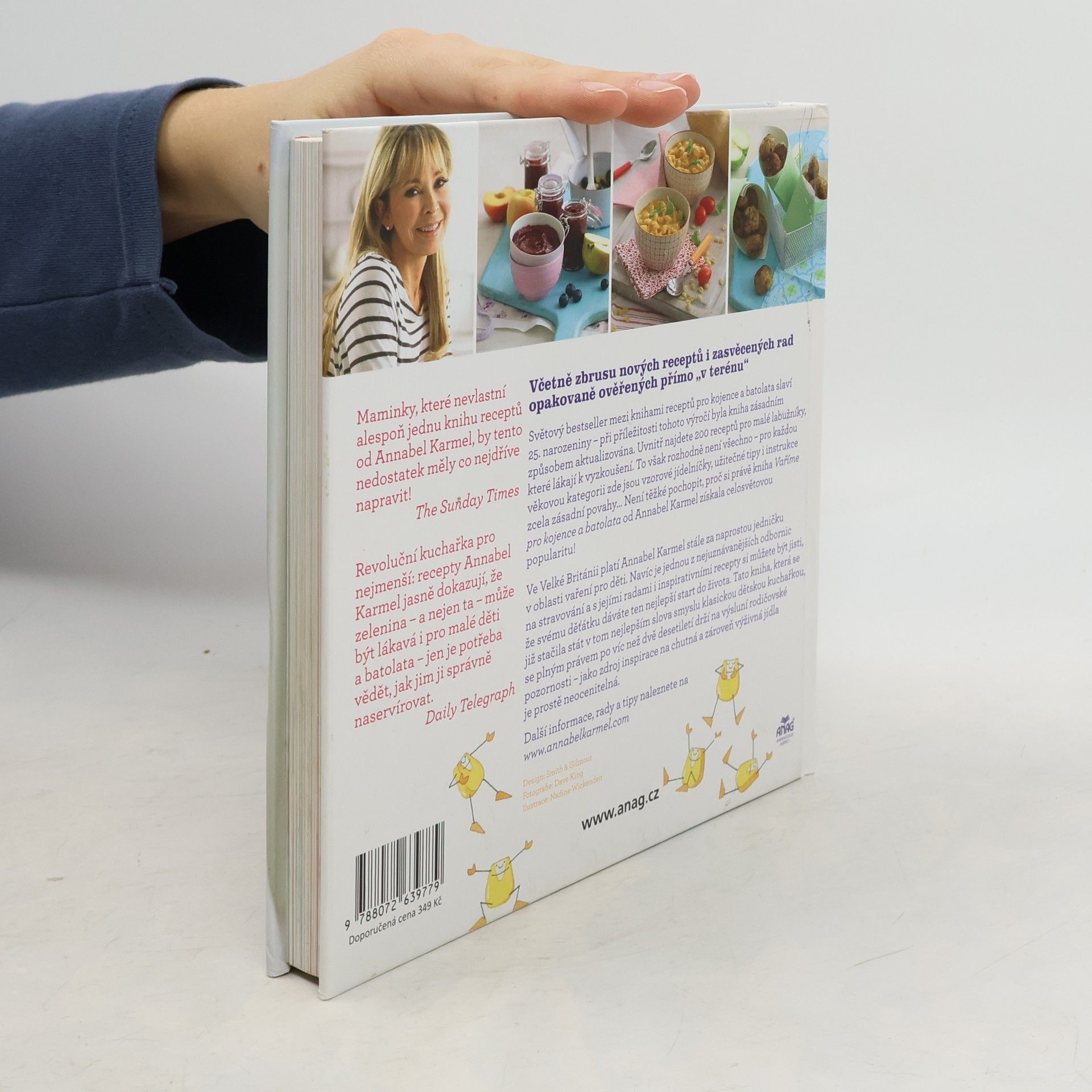 200 receptů na rychlé, snadné a zdravé pokrmy. Moderní a ucelená příručka pro moderní maminku – kuchařka, ve které autorka představuje recepty na výživné a chutné pokrmy pro miminka a batolata, vyšla poprvé v roce 1991. Od té doby se z ní stal vzor pro všechny maminky na celém světě. Naprostý bestseller mezi kuchařkami pro děti. Řada doporučení, nadšené, dobře nakrmené a spokojené děti a pozitivní hodnocení vás jistě přesvědčí o tom, že tato kniha zůstává mezi dětskými kuchařkami bestsellerem číslo jedna. Annabel v ní představuje kolekci svých ověřených lákavých receptů. Kromě toho vám předvede tipy, jak při přípravě jídla pro vaše nejmenší ušetřit čas. Nově v tomto vydání. V přepracovaném vydání naleznete mimo jiné 29 nových receptů a rovněž nejnovější odborné informace týkající se dětské výživy. Bestseller mezi kuchařkami pro děti je nyní ještě lepší než předtím. Skvělou pomůckou může být i velký plakát s přehledným schématem popisujícím odstavování miminka krok za krokem a přechod na pevnou stravu. Toto praktické schéma si můžete například připevnit na lednici nebo na zeď a mít ho stále na očích.