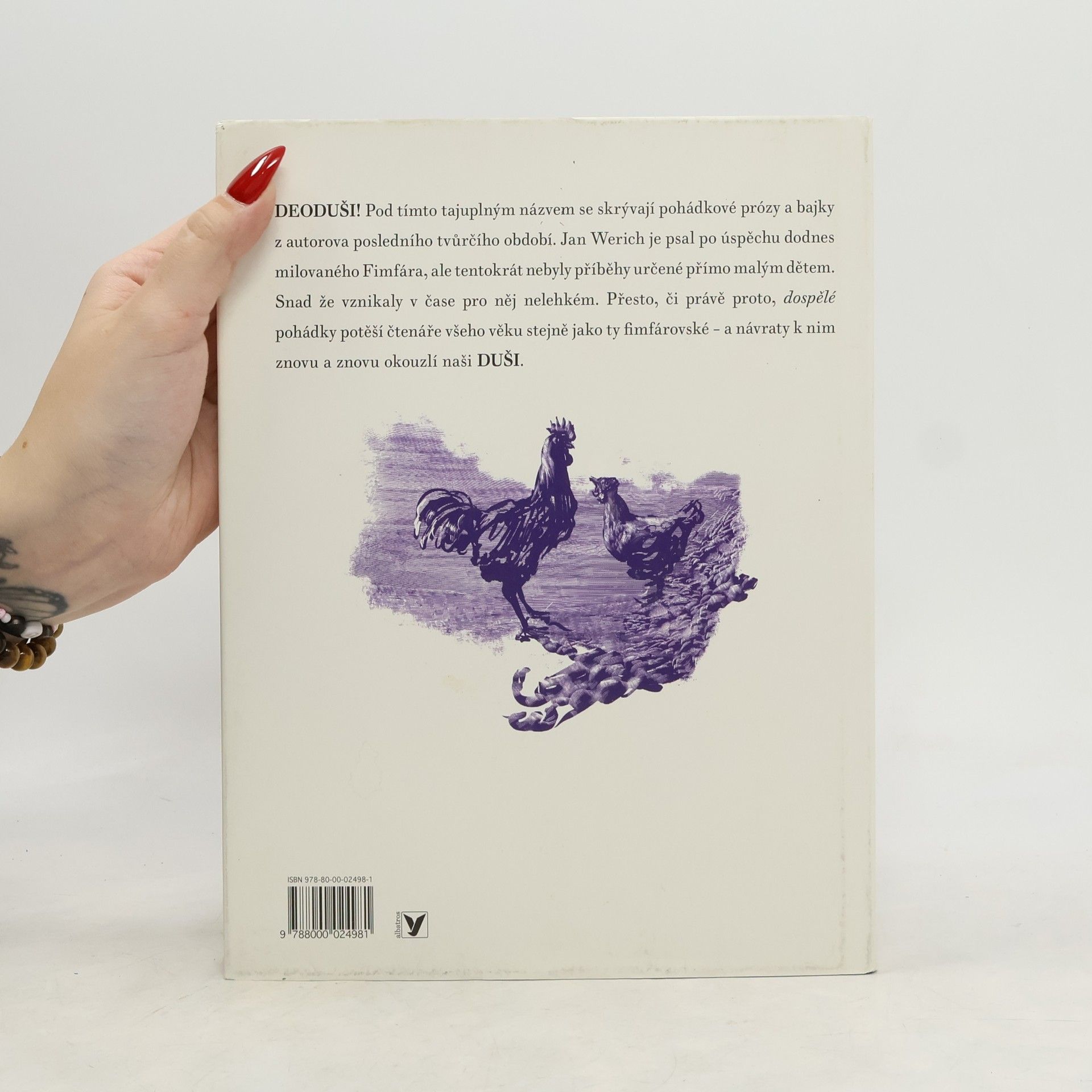 Sbírka obsahuje Werichovy bajky a pohádkové prózy z autorova posledního tvůrčího období, převážně z let 1959–1972. Příběhy, napsané po oblíbeném a úspěšném Fimfáru, jsou stejně tak nápadité, poetické i humorné, láska v nich vítězí nad nenávistí, vstřícnost nad arogancí, statečnost nad zbabělostí, dobro nad zlem, jak už to v pohádkách bývá, ale zde čtenář silně vnímá „duši“ moudrého klauna. Přesto nás Werichovy pohádky znovu a znovu okouzlují a stále se k nim chceme vracet. Editor výboru Ondřej Müller pečlivě vybral 15 pohádek a bajek do knížky s tajuplným názvem Deoduši, která byť má podnázev Dospělé pohádky, potěší čtenáře všeho věku – stejně tak jako příběhy fimfárovské.