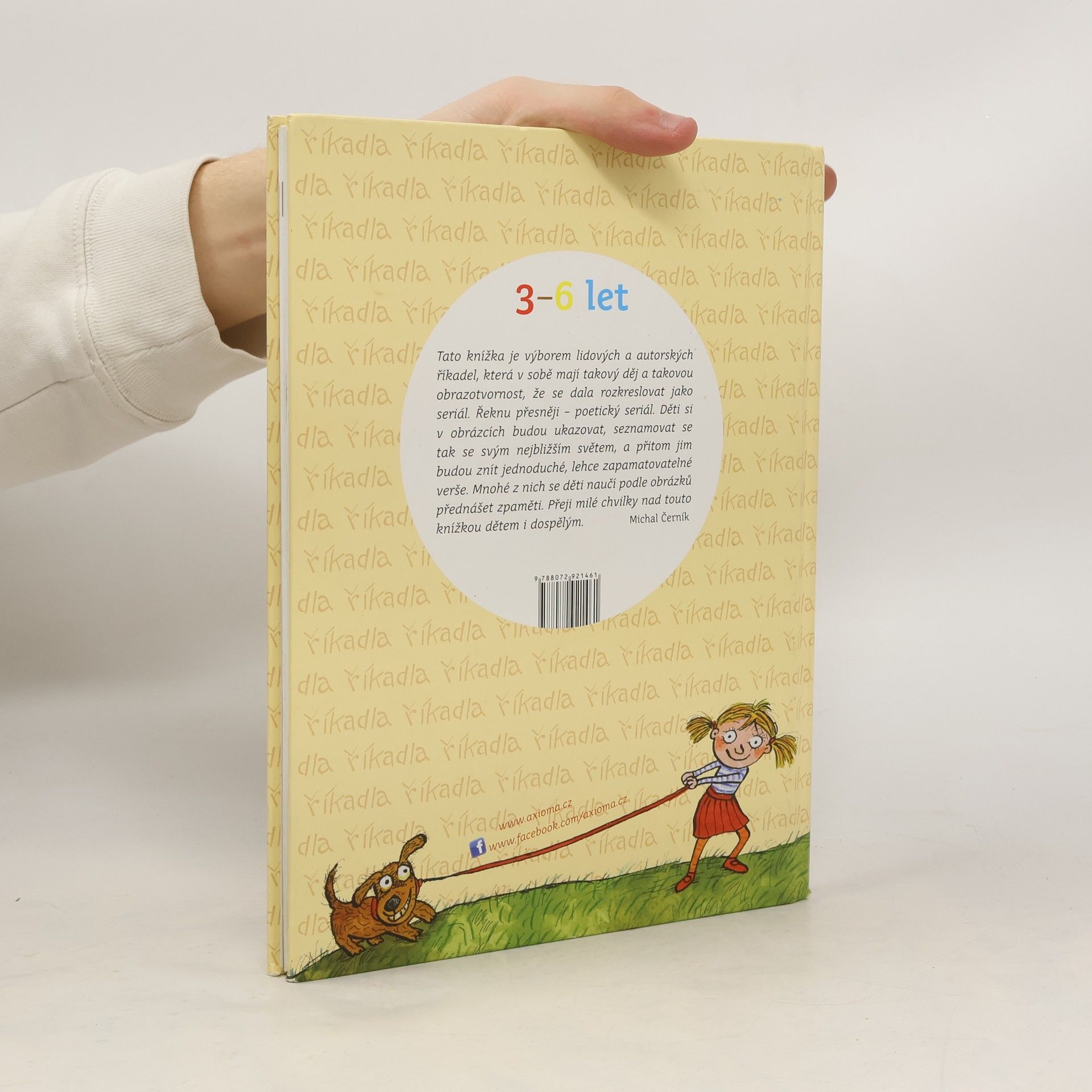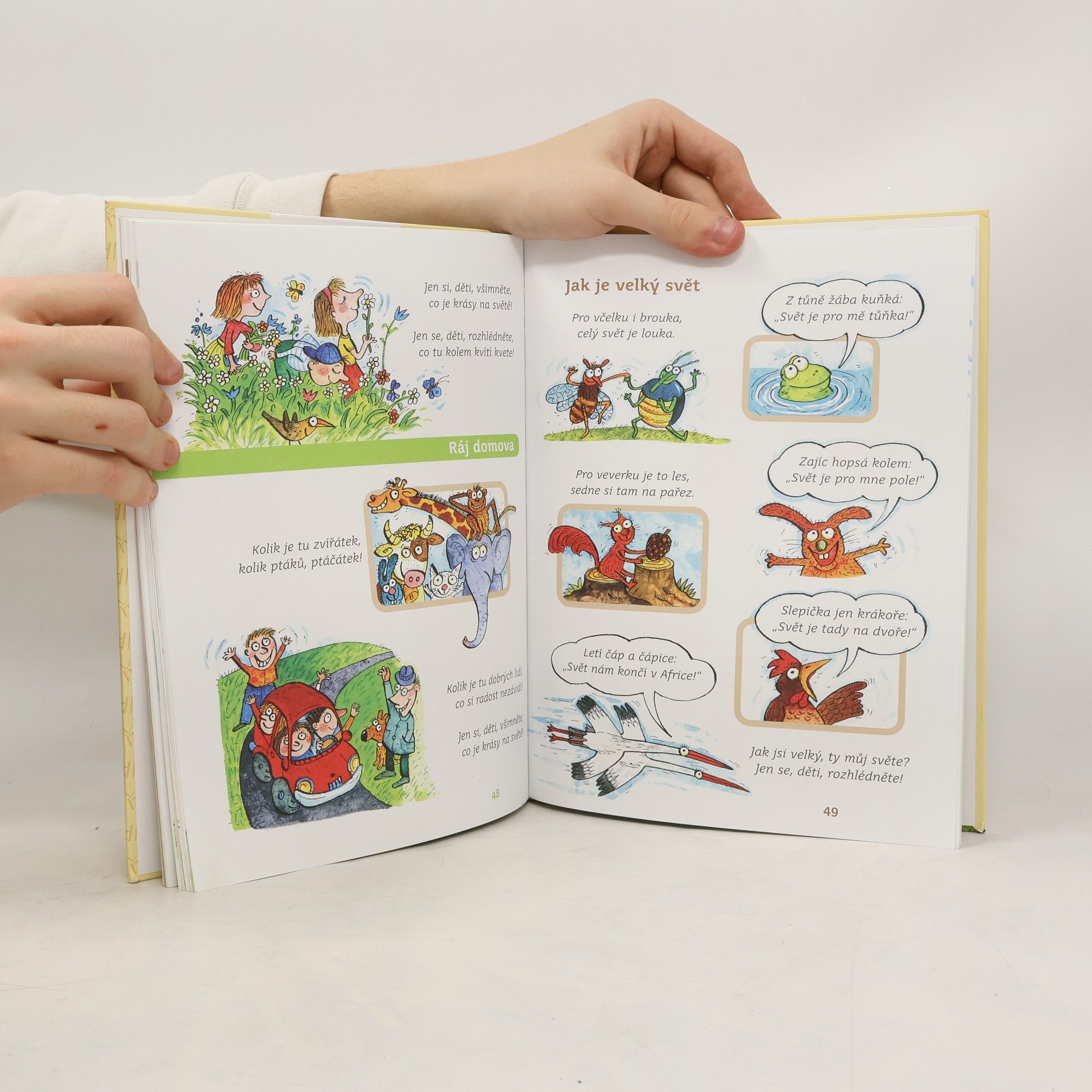 Tato knížka je výborem lidových a autorských říkadel (František Hrubín, Jan Čarek, Michal Černík, Jiří Žáček, Jan Vodňanský aj.), která v sobě mají takový děj a takovou obrazotvornost, že se každý verš dal rozkreslit do jednotlivých obrázků jako seriál nebo komiks. Děti si tak mohou v obrázcích ukazovat, seznamovat se se svým nejbližším světěm, a přitom jim budou znít jednoduché, snadno zapamatovatelné verše, které se pomocí obrázků snadno naučí nazpaměť.