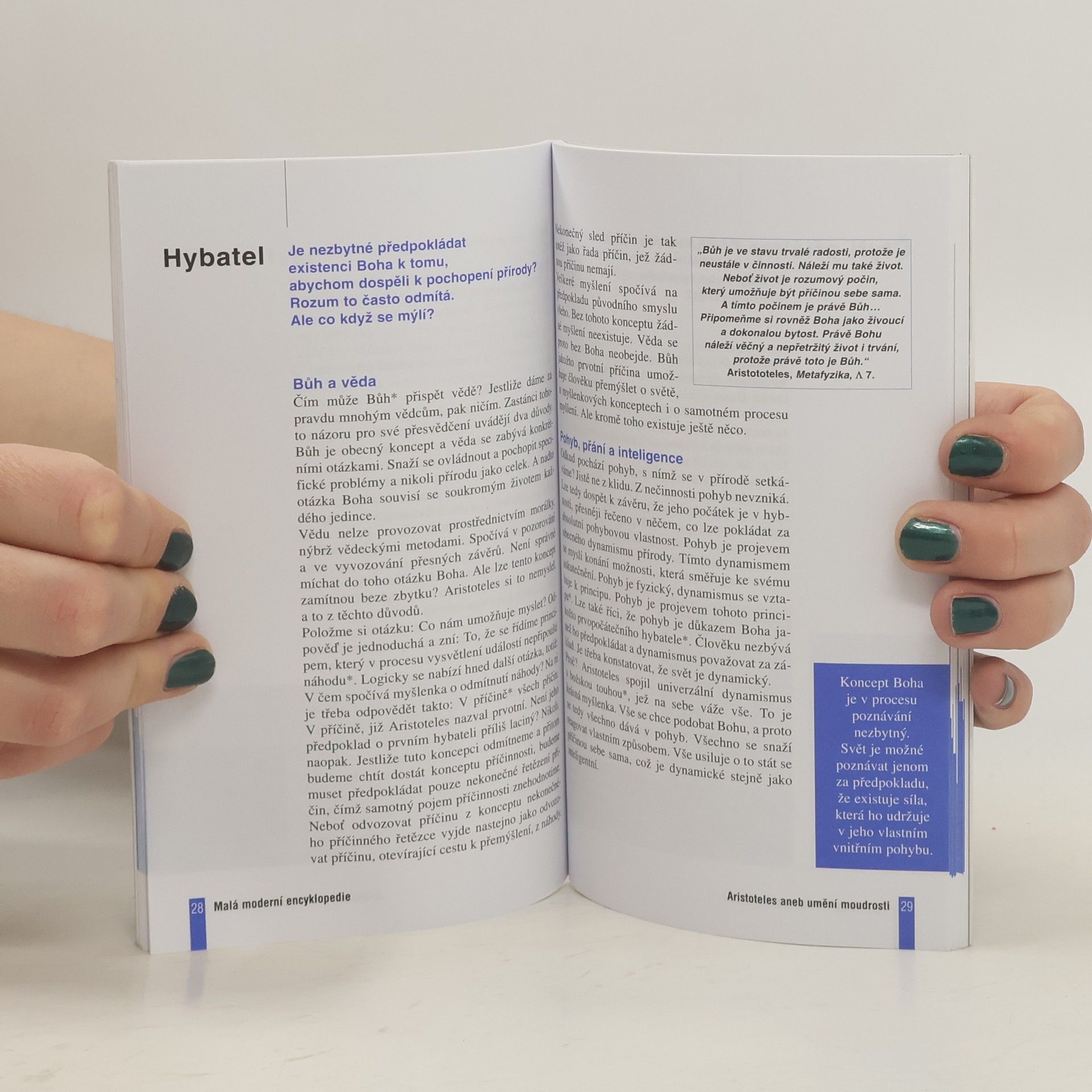 Edice Malá moderní encyklopedie - MME. V 5. stol. př. n. l. se Řecko stalo kolébkou nové kultury. Lidé se přestali opírat výhradně o náboženskou tradici, objevili sílu myšlení a začali mu důvěřovat i při řízení záležitostí obce. Platon podřizoval skutečnost ideám, a založil tím idealismus, Aristoteles podřídil naopak ideje skutečnosti, a dal tím základ realismu. Kniha provede čtenáře základy aristotelovského myšlení.