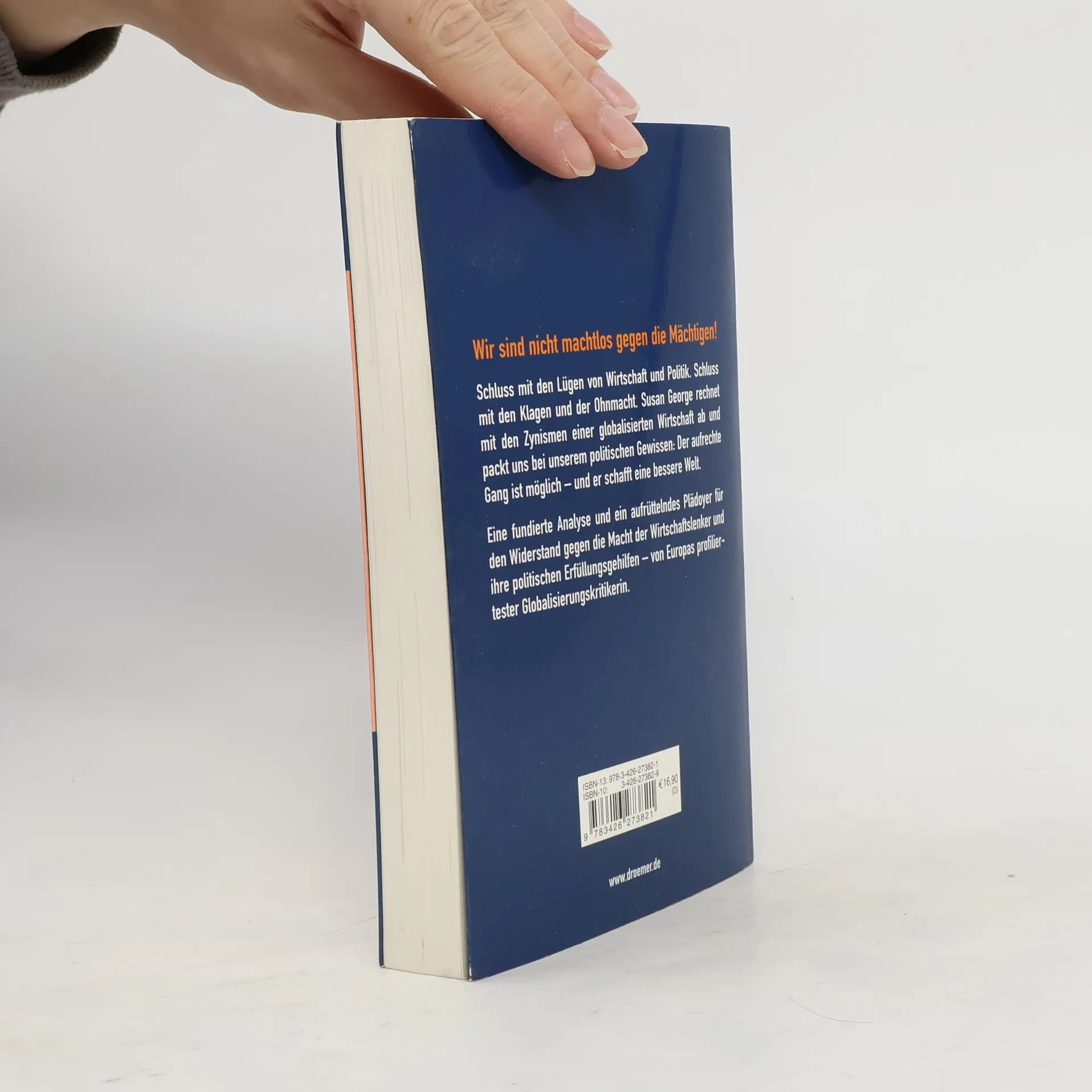 Schluss mit der Ohnmacht. Susan George rechnet mit den Zynismen einer globalisierten Wirtschaft ab und packt uns bei unserem politischen Gewissen: Der aufrechte Gang ist möglich – und er schafft eine bessere Welt. Das Versprechen, der freie Welthandel bringe Wohlstand für alle, hat sich als Lüge erwiesen. Während die Reichen immer reicher werden, nimmt die Armut weltweit immer mehr zu. In ihrem neuen Buch führt uns Susan George eindringlich vor Augen, dass es in der Tat höchste Zeit ist, aktiven Widerstand gegen das rücksichtslose Diktat der Wirtschaft zu leisten. Jeder Einzelne sollte sich aktiv für ein sofortiges Ende des ruinösen Raubbaus und eine gerechte Verteilung des Reichtums einsetzen, fordert sie und liefert die Anleitung dafür, wie wir das Gefühl der Ohnmacht überwinden und die Bewegung für globale Gerechtigkeit unterstützen können. Eine bessere Welt ist möglich – wenn wir endlich handeln!