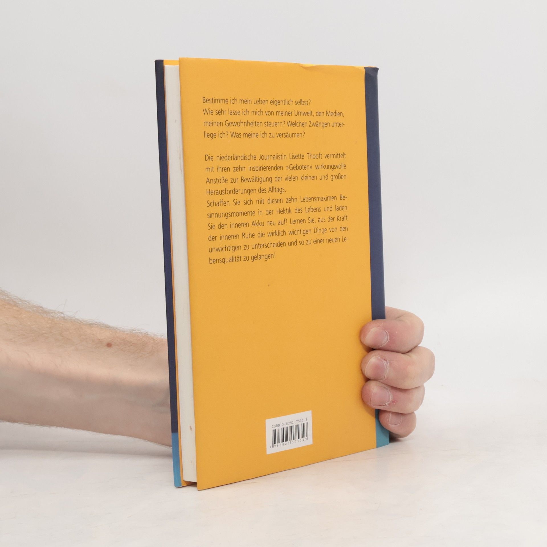 Der Leitfaden für ein entspanntes Dasein Leiden Sie unter Verpflichtungen, die Sie lieber nicht hätten? Gleichen Ihre Tage einem Wettrennen gegen die Uhr? Sind Sie eigentlich zu müde, um Urlaub zu machen? Dann sind die Zehn Gebote der inneren Ruhe genau das, was Sie brauchen. Selbstdisziplin ist nicht dasselbe wie innere Ruhe. Müssen Sie im einen Fall gleichsam eine innere Tür zuschlagen, um die äußere Unruhe von sich fern zu halten, so handelt es sich bei der inneren Ruhe um eine stabile Kraft, die frei ein- und ausströmen kann. Das Buch hilft Ihnen, diese innere Ruhe zu finden. In zehn inspirierenden Kapiteln, die jeweils eine Grundmaxime der inneren Ruhefindung behandeln, werden die Fallstricke und Sackgassen unserer heutigen Lebensweise kritisch unter die Lupe genommen und notwendige Verhaltensänderungen angeregt. Geistreich, humorvoll und in klarer Sprache zeigt Lisette Thooft, wie wir unser Leben durch elementare seelische Griffe wieder selbst bestimmen lernen, aller Fremdbestimmung und Hektik zum Trotz.