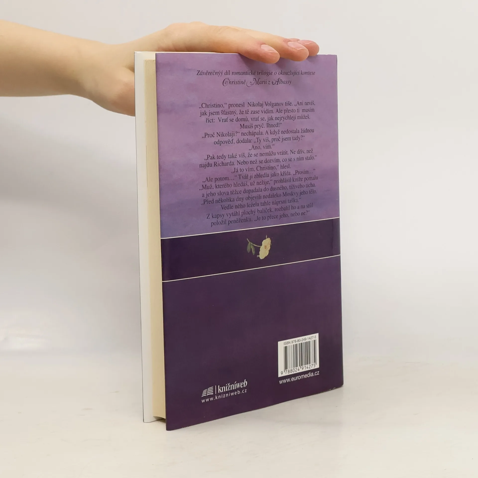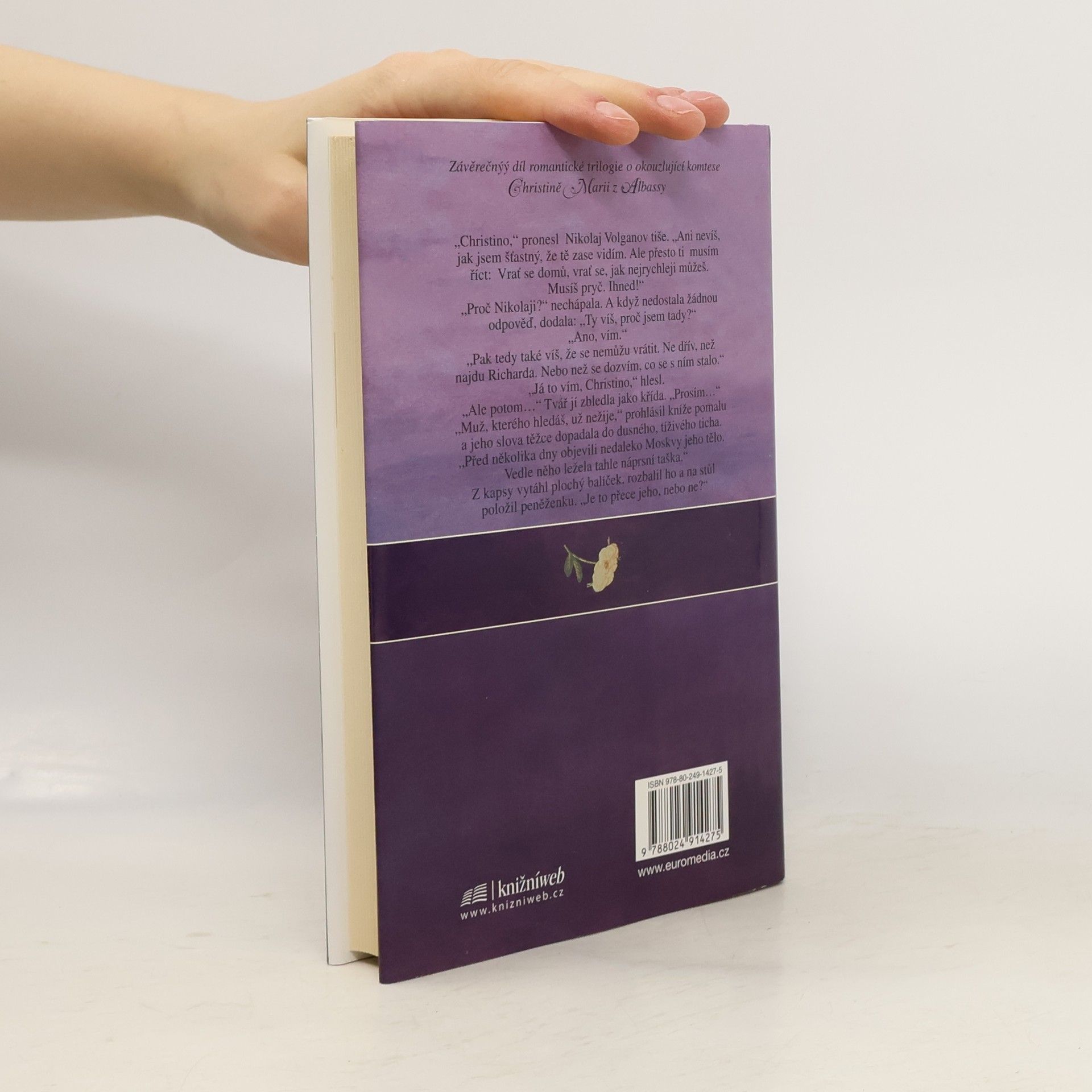 Dějištěm třetího dílu tohoto poutavého triptychu se stává Petrohrad, jehož honosná nejvyšší společnost přijímá půvabnou hraběnku Christinu Marii s otevřenou náručí. Tato výjimečná žena dokáže mistrovsky skrývat své pocity. Navenek se skvěle baví, ve skutečnosti však umírá strachy. Hrabě Arnsberk, muž, kterého nadevše miluje, totiž v Petrohradě beze stopy zmizí...