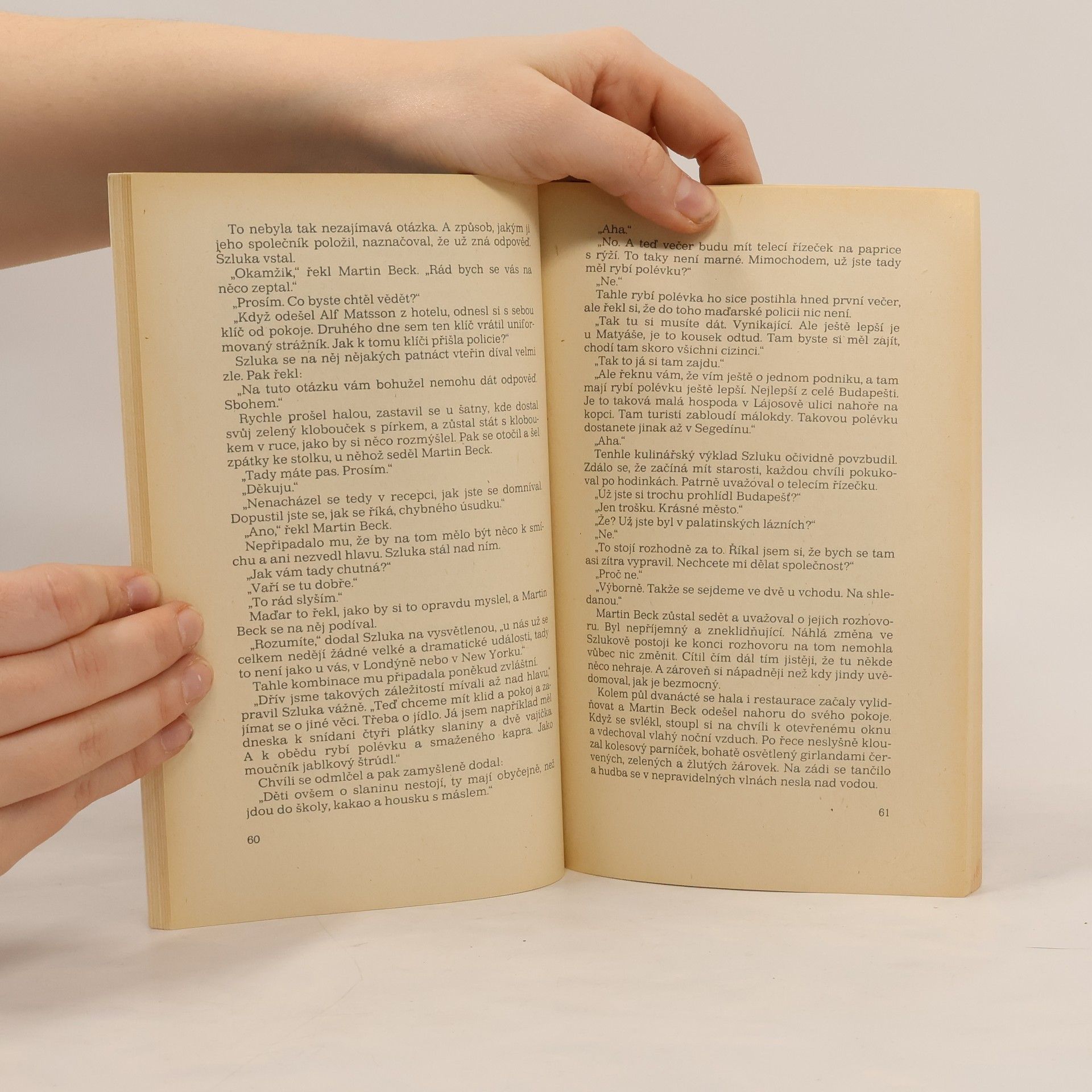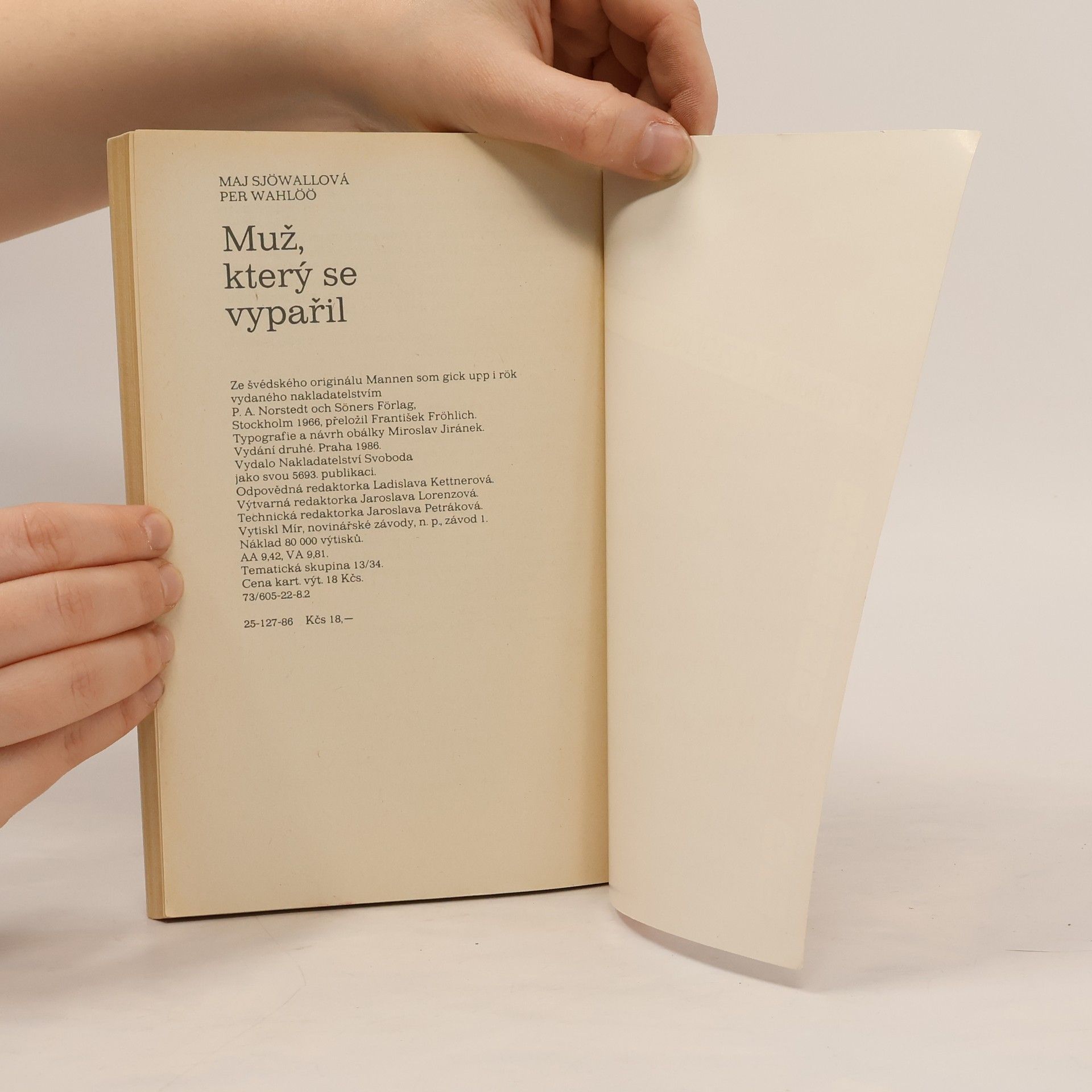 Detektivní román, v němž Martin Beck pátrá po zmizelém stockholmském novináři, který jel údajně dělat reportáž do Budapešti, a nakonec musí vyřešit jeho vraždu. Ze švédského originálu „Mannen som gick upp i rök“, vydaného nakladatelstvím P.A. Norstedt och Söners Förlag, Stockholm1966, přeložil František Fröhlich. Vydání druhé.