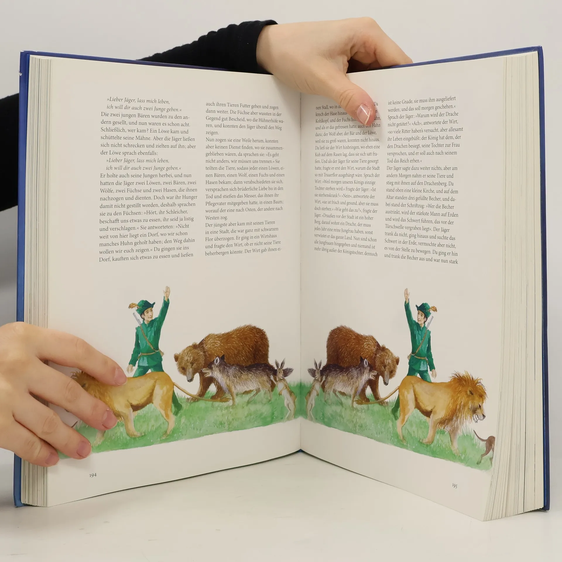 Vollständige Ausgabe der Grimm Märchen: Unzählig sind die im Laufe der letzten 200 Jahre erschienenen Märchenbücher der Brüder Grimm. Für dieses dicke Hausbuch wurden sämtliche Märchen aus der früheren Ausgabe von 1857 vereint und es wurden ihnen noch unbekanntere Grimmsche Märchen aus früheren Ausgaben, beigefügt. In leicht modernisierter Sprache sind sie nun alle zu lesen: "Das Schneewittchen", "Fundevogel", "Hänsel und Gretel", "Der Spielhansl", "Der goldene Schlüssel" und und und... 207 Märchen an der Zahl. Beeindruckend sind die Bilder von Charlotte Dematons, auf denen sie die Atmosphäre der Märchen eindrücklich festhält und mit denen sie die Fanasie mancher Betrachtenden zu schüren vermag. Ein reich und wunderbar bebildertes Märchenbuch, in dem es eine wahre Freude ist, in eine unerschöpfliche Märchenwelt einzutauchen, in der das Gute zumeist über das Böse siegt. Ein umfangreiches Wörterbuch und Lexikon zu den Märchen ist am Ende des Buches zu finden. Ab 7 Jahren, augezeichnet, Beatrice Balint.