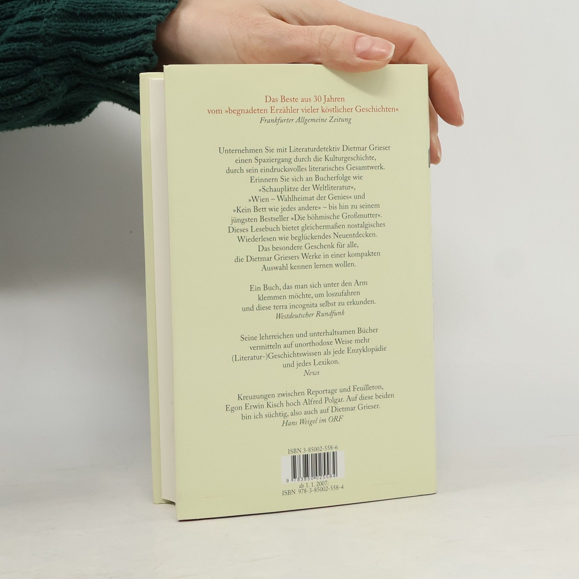 Nostalgisches Lesevergnügen und Entdeckerfreude: Das Beste aus 30 Jahren in einem Band. Das umfangreiche Werk von Dietmar Grieser umfasst mittlerweile 33 Büchern. Anlass genug, seiner mit jedem Jahr wachsenden Leserschar einen repräsentativen Überblick über die Vielfalt seines literarischen Schaffens zu ermöglichen. Dies geschieht mit diesem lang erwarteten Lesebuch, das eine oder auch mehrere Kostproben aus jedem seiner Bücher enthält und somit einen eindrucksvollen Überblick über die Vielfalt seiner Themen bietet. Ein Sammelband, in dem Dietmar Griesers Leser sich an wunderbare Geschichten und Texte erinnern können, aber auch ein verführerisches Einsteigerbuch für alle, die das Vergnügen, Dietmar Griesers Werke kennen zu lernen, noch vor sich haben.