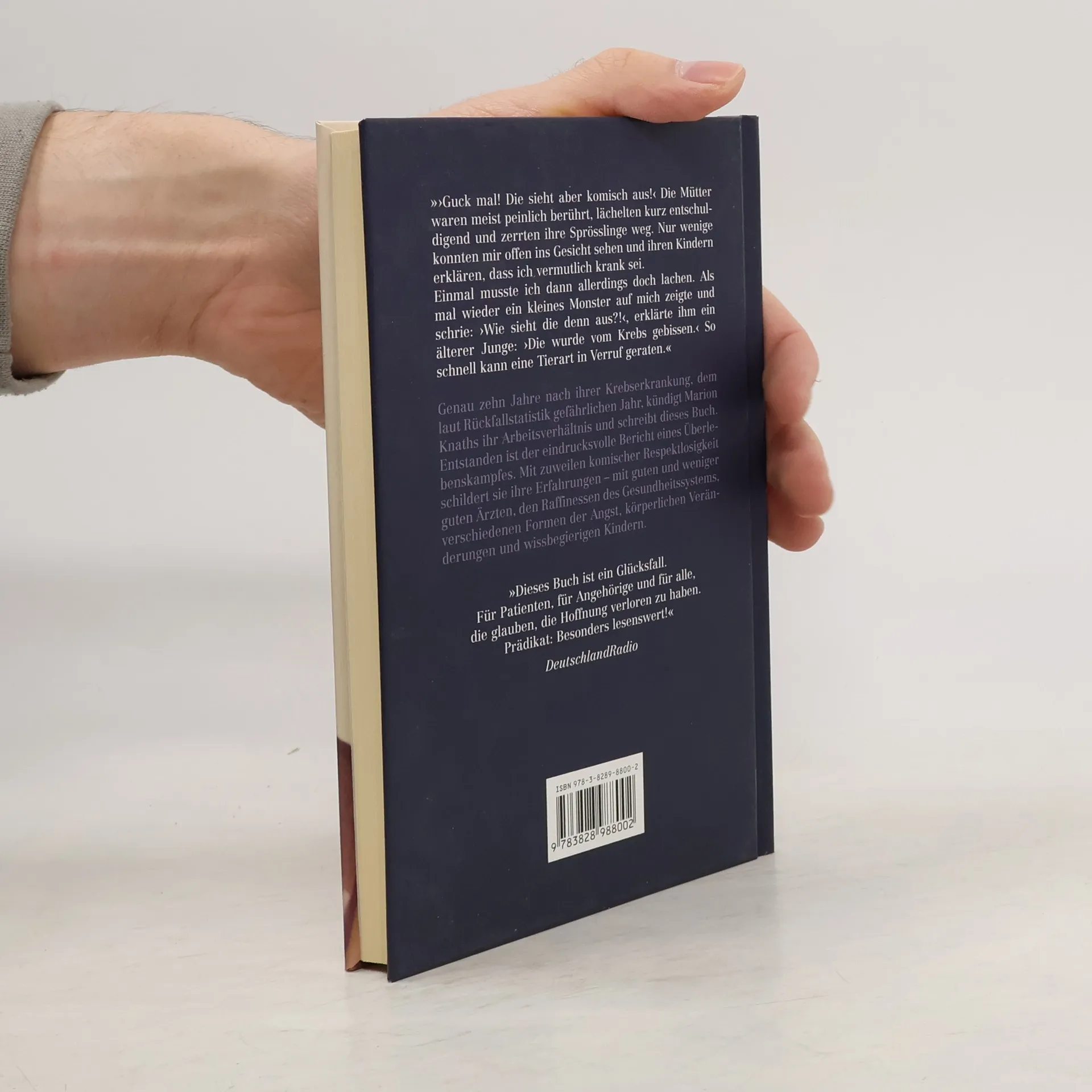 Mit 25 Jahren erhält Marion Knaths, beruflich erfolgreich und voller Zukunftspläne, eine niederschmetternde Diagnose: Morbus Hodgkin im letzten Stadium. Trotz oder gerade wegen aller pessimistischen Prognosen nimmt die junge Frau den Kampf gegen die Krankheit auf. Text(Klappentext o.ä.) Deutsch Genau zehn Jahre nach ihrer Krebserkrankung, dem laut Rückfallstatistik gefährlichen Jahr, kündigt Marion Knaths ihr Arbeitsverhältnis und schreibt dieses Buch. Entstanden ist der eindrucksvolle Bericht eines Überlebenskampfes. Mit zuweilen komischer Respektlosigkeit schildert sie ihre Erfahrungen - mit guten und weniger guten Ärzten, den Raffinessen des Gesundheitssystems, verschiedenen Formen der Angst, körperlichen Veränderungen und wissbegierigen Kindern. Dieses Buch erzählt nicht nur vom Sieg über eine tödliche Krankheit, es gibt auch Angehörigen und Freunden eine Orientierung, wie man mit Schwerstkranken leben und ihnen helfen kann, selbst wenn jede Hoffnung bereits verloren scheint.