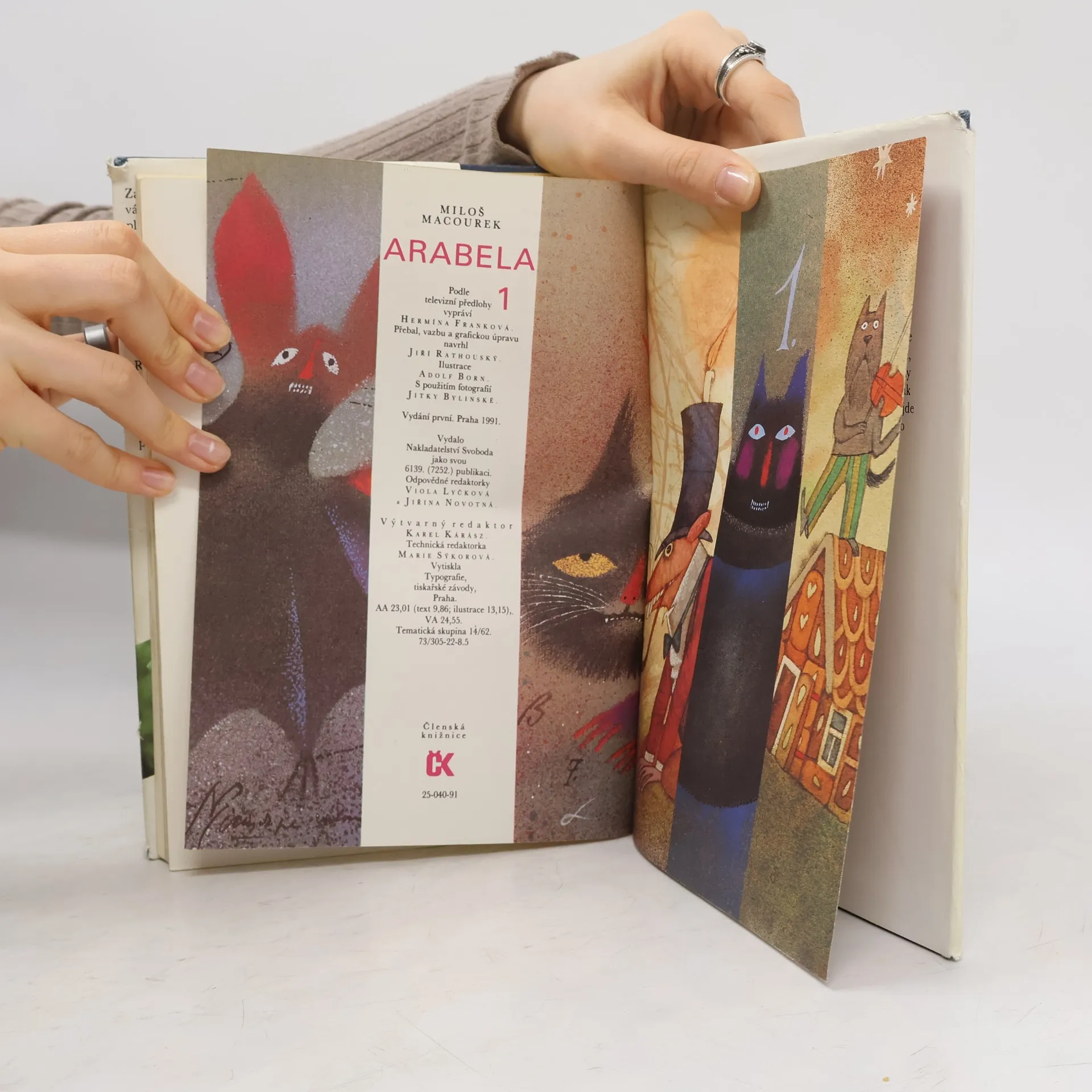 Arabela dnes již patří mezi pohádkovou klasiku. Zavede malé čtenáře do světa, který většinou už důvěrně znají z televizní obrazovky. Honzík a Mařenka se v něm setkají s krásnou Arabelou, zlou Xenií, prohnaným Rumburakem i se spoustou dalších pohádkových postav, které volně přecházejí z pohádkového světa do lidského a působí tak neuvěřitelný zmatek. Doplněno barevnými fotografiemi