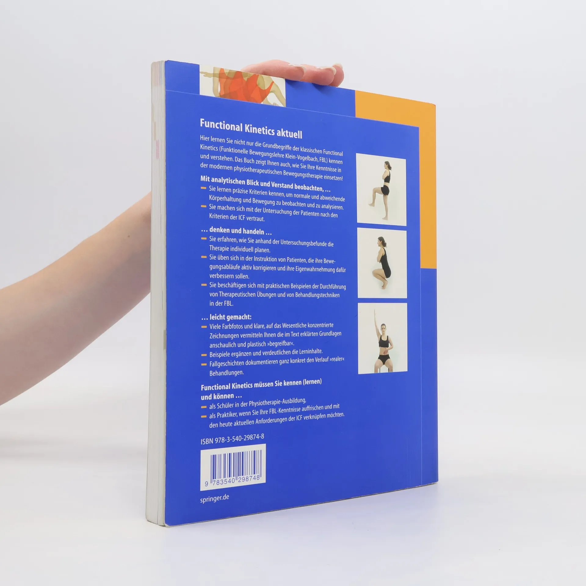 Hier lernen Sie nicht nur die Grundbegriffe der klassischen Funktionellen Bewegungslehre kennen und verstehen! Das Buch zeigt Ihnen auch Vorgehensweisen und Strategien, wie Sie Ihre Kenntnisse in der modernen physiotherapeutischen Bewegungstherapie praktisch einsetzen. Sie uben sich u.a. in der prazisen Beobachtung und Analyse normaler und abweichender Korperhaltung und Bewegung; den Patienten richtiges Bewegungsverhalten und die aktive Eigenwahrnehmung dafur vermitteln; den Gundlagen FBL-spezifischer Behandlungstechniken und therapeutischer Ubungen.Anschaulich wird die Darstellung durch viele Beispiele, die die Lerninhalte erganzen und verdeutlichen, Farbfotos und klare, auf die wesentlichen Komponenten der Bewegung reduzierte Zeichnungen.Die 6. Jetzt mit grosszugigem Buchformat und lernfreundlichem, farbigen Layout; FBL-spezifische Terminologie sorgfaltig "ubersetzt" in gebrauchliche Physio-Fachsprache; Untersuchung und Behandlung auf der Grundlage der ICF; Myofasziale Systeme und ihre klinische Bedeutung."