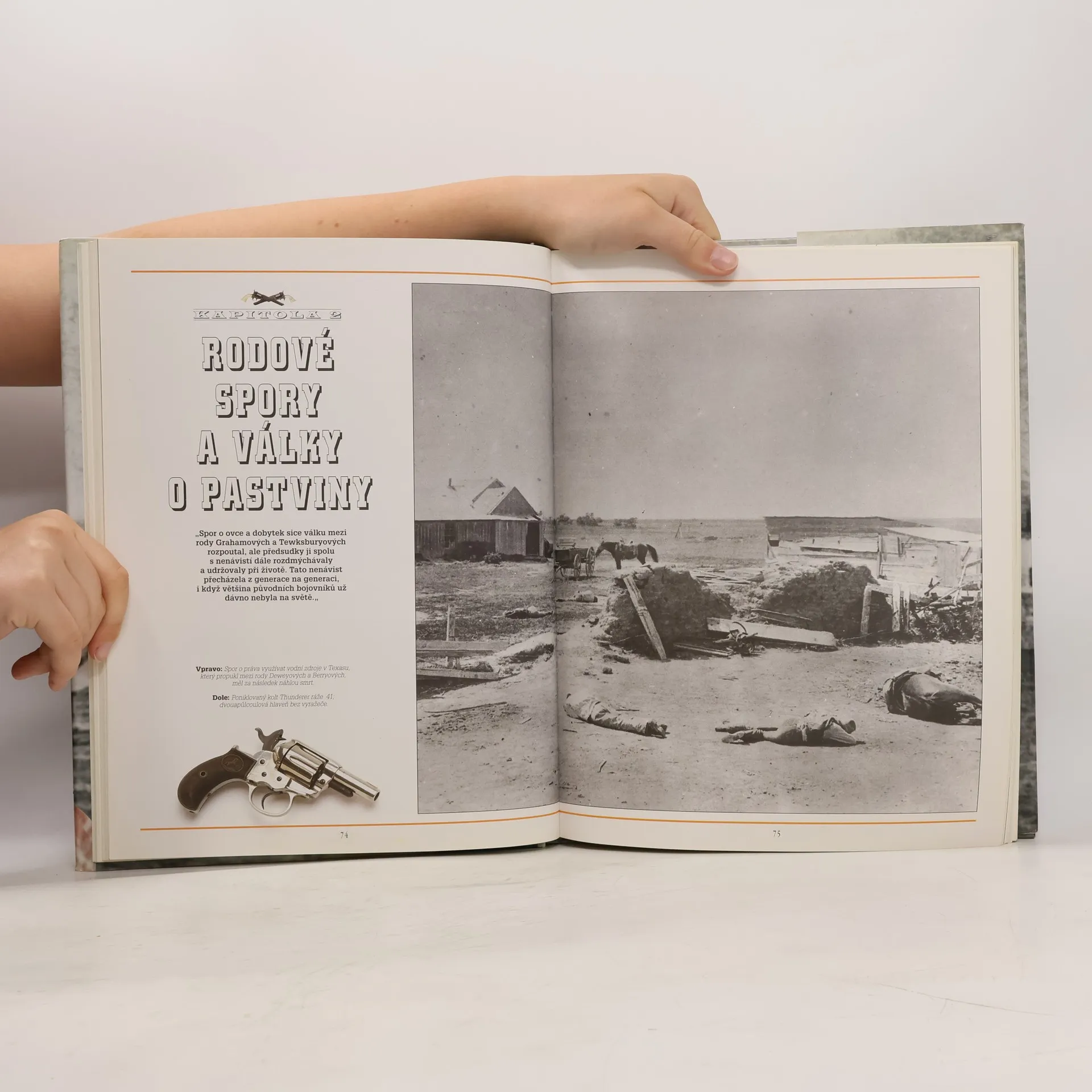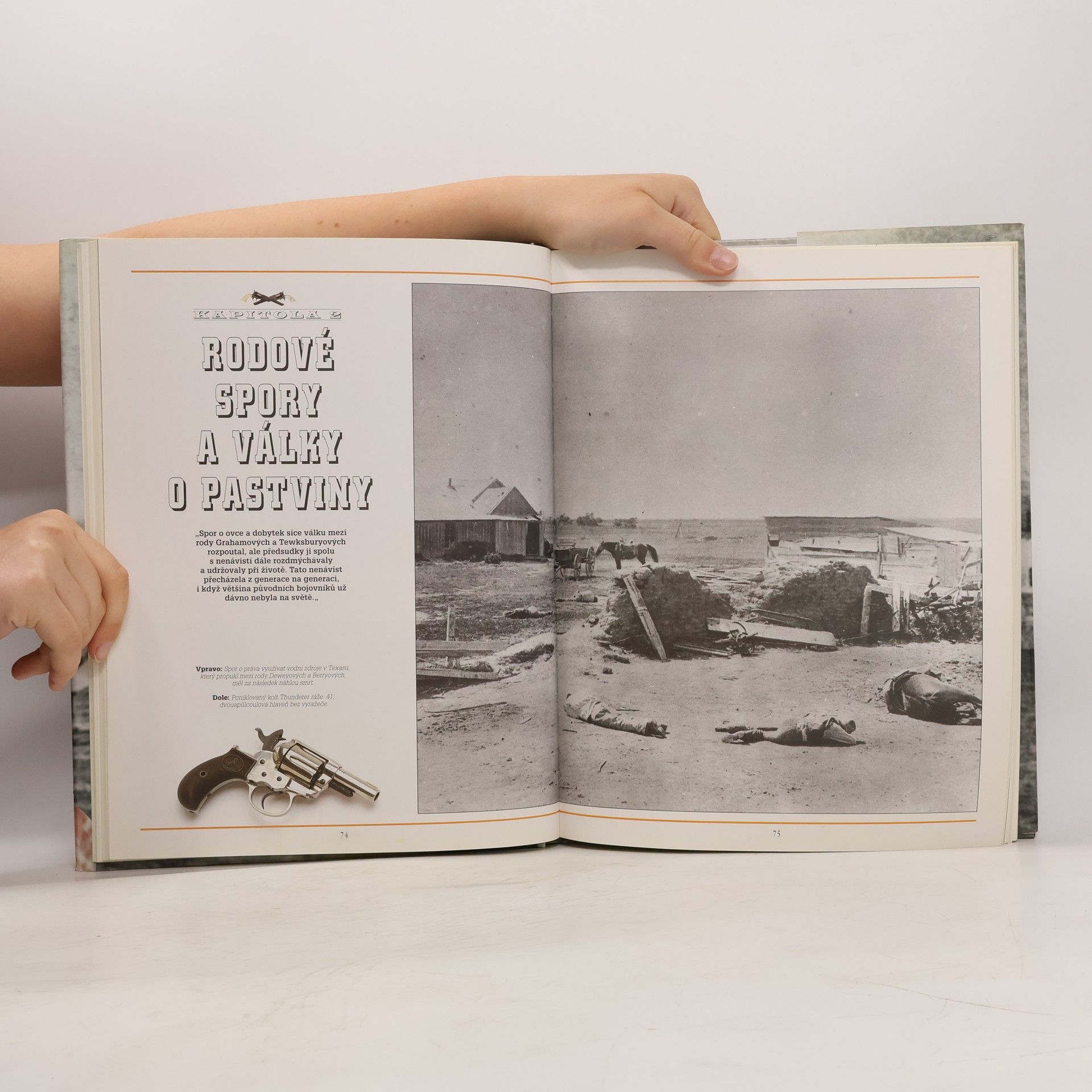 Velkoformátová kniha o historii divokého Západu: Bouřlivý Západ, Rodové spory a válka o pastviny, Kovbojové a chaos kravích měst a Zákon a pořádek: Od pušek k soudcovskému kladívku.