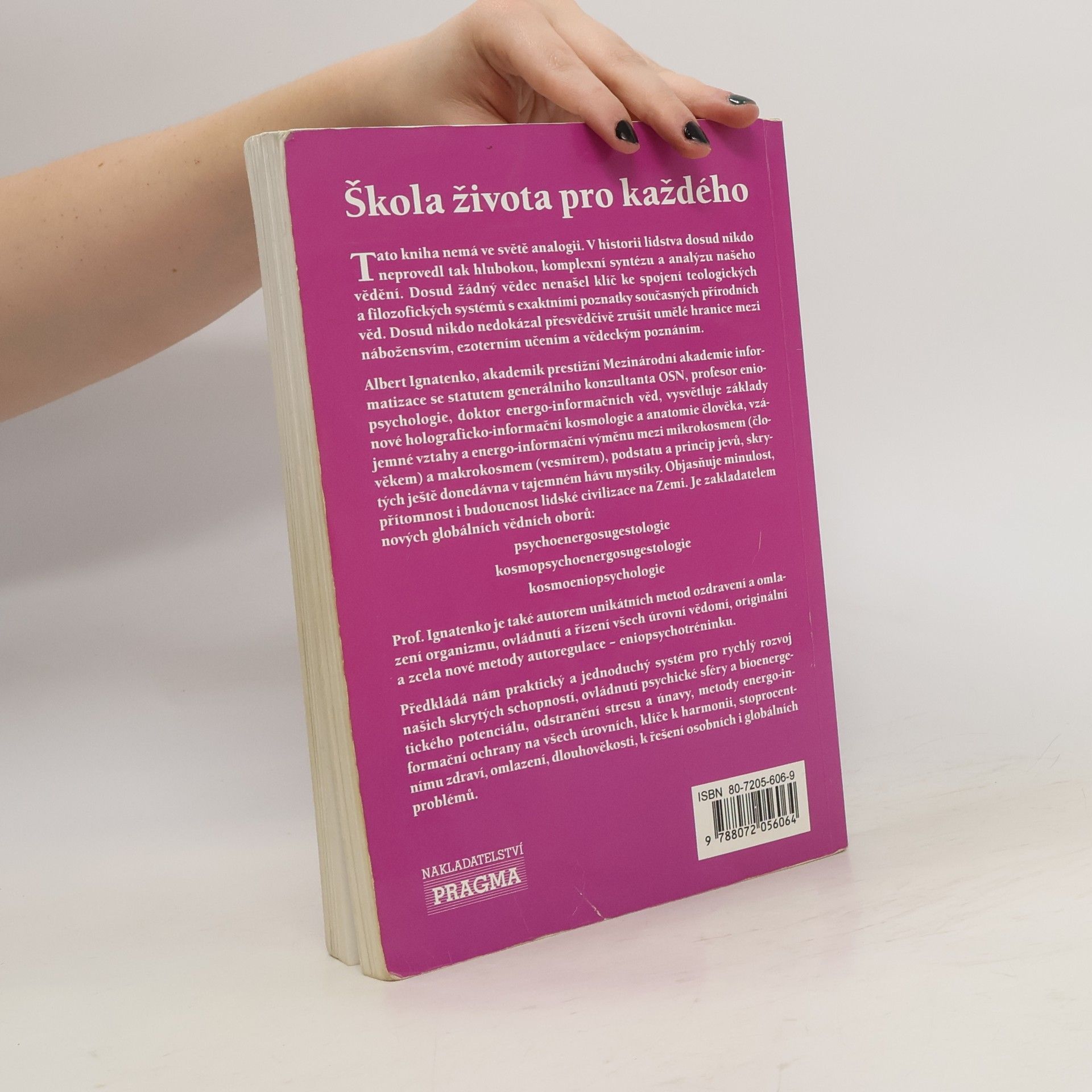 Kniha nemá ve světě analogii. V historii lidstva dosud nikdo neprovedl tak hlubokou, komplexní syntézu a analýzu našeho vědomí. Dosud žádný vědec nenašel klíč ke spojení teologických a filosofických systémů s exaktními poznatky současných věd. Prof. A. Ignatenko, učenec s rozsáhlými praktickými zkušenostmi, je zakladatelem nového vědního odvětví, které se nazývá psychoenergosugestologie.... celý text
