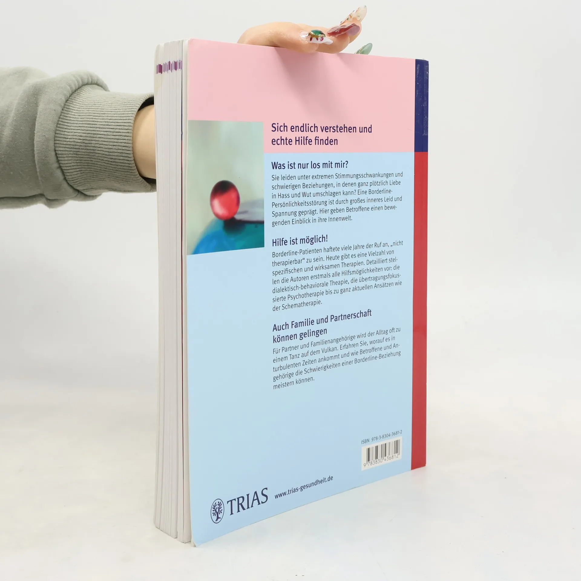 Dieser Ratgeber ist eine große Hilfe für Menschen, die unter extremen Stimmungsschwankungen leiden. Ein Spezialteil ist den Partnern gewidmet. Er wirbt um Verständnis für die oft bizarren Verhaltensweisen der Borderline-Patienten. Eine große Hilfe sind die Tipps zur richtigen Ansprache und die Strategien zur Deeskalation. Borderlinern selbst bietet dieses Buch Anregungen zur Selbsthilfe und zur Vermeidung von Selbstverletzungen. Neu ist ein Kapitel für Frauen mit Kinderwunsch und Mütter, die unter dem Borderline-Syndrom leiden.