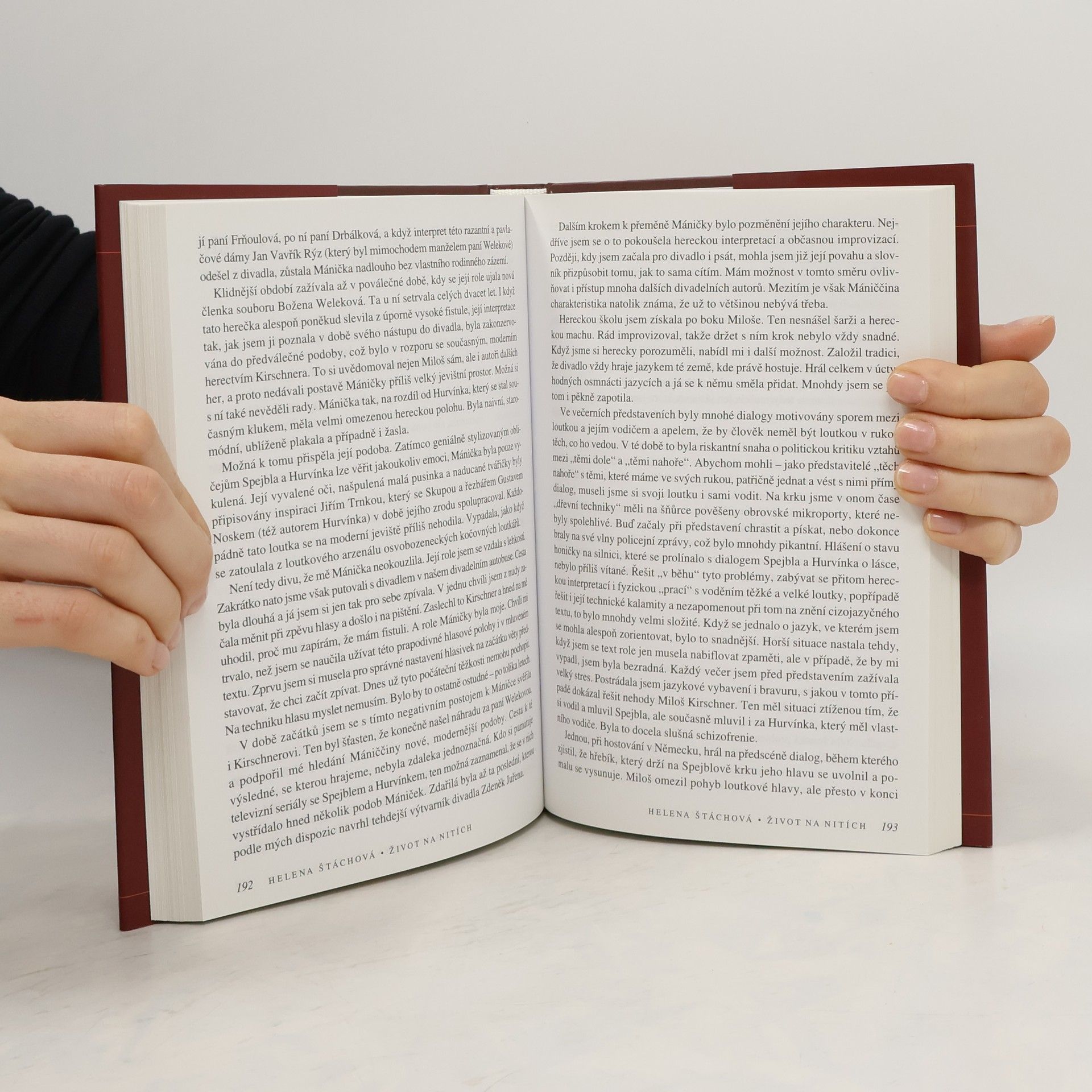 Rozsáhlá autobiografie herečky a ředitelky Divadla Spejbla a Hurvínka, Heleny Štáchové zachycuje její dětství, studium, divadelní a rozhlasovou kariéru a především její působení v Divadle S+H. Současně zde čtenáře seznamuje s důležitými mezníky jejího života, manželství s Milošem Kirschnerem a jeho smrt, narození dětí, spory o ochranné známky Spejbla a Hurvínka... Příběh dobarvuje řada fotografií z divadelního i soukromého života.