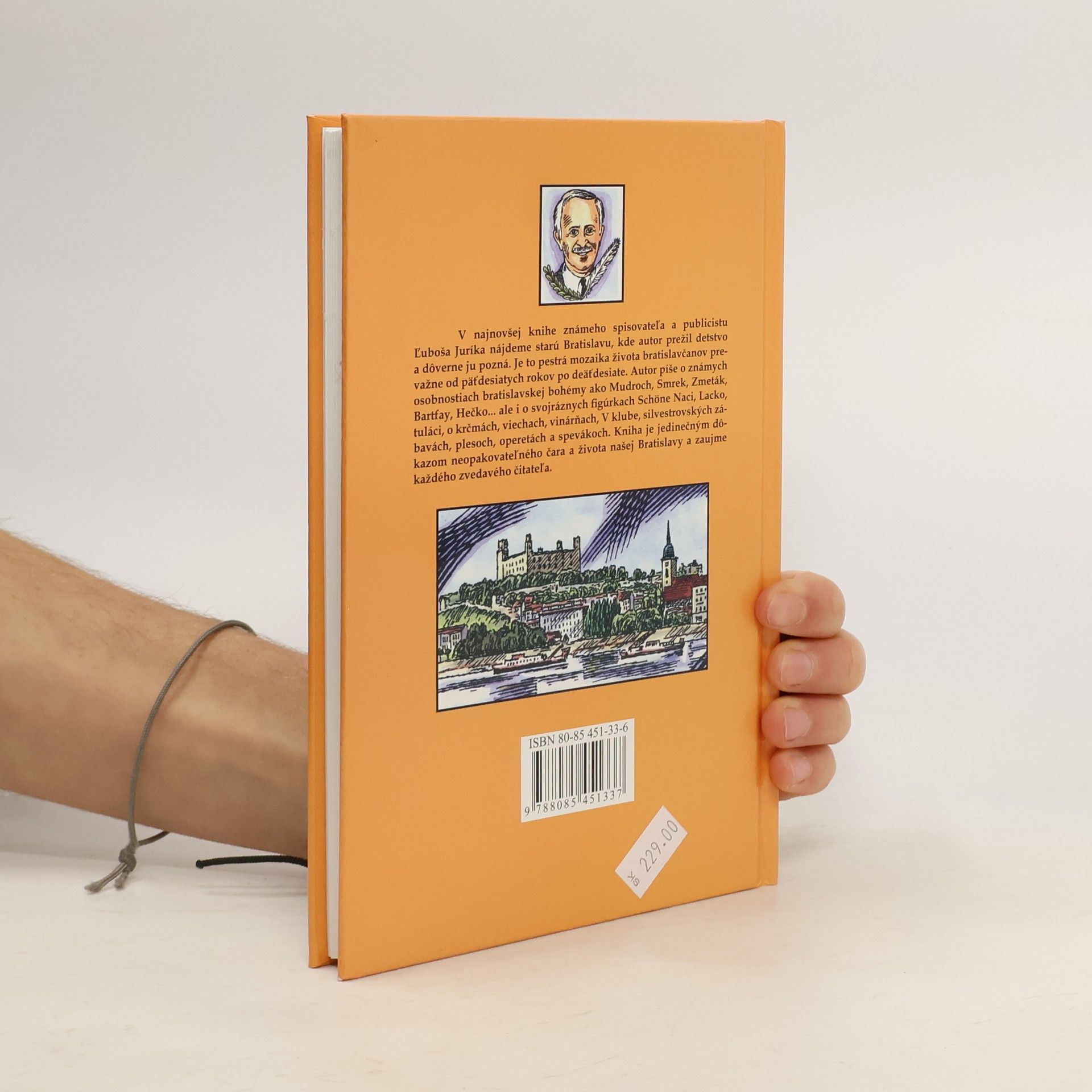 V knihe známeho spisovateľa a publicistu Ľuboša Juríka nájdeme starú Bratislavu, kde autor prežil detstvo a dôverne ju pozná. Je to pestrá mozaika života bratislavčanov prevažne od päťdesiatych rokov po deväťdesiate. Autor píše o známych osobnostiach bratislavskej bohémy ako Mudroch, Smrek, Zmeták, Bartfay, Hečko... ale i o svojráznych figúrkach Schöne Naci, Lacko, tuláci, o krčmách, viechach, vinárňach, V klube, silvestrovských zábavách, plesoch, operetách a spevákoch. Kniha je jedinečným dôkazom neopakovateľného čara a života našej Bratislavy a zaujme každého zvedavého čitateľa.