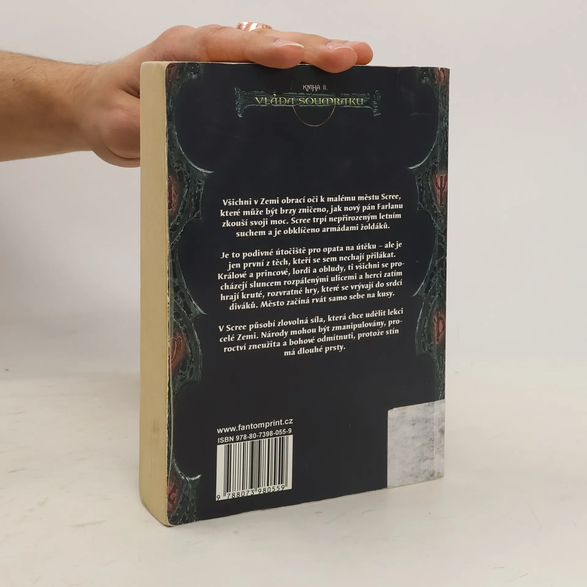 Všichni v Zemi nyní obrací oči k malému městu Scree, které může být brzy zničeno, jak nový pán Farlanu zkouší svoji moc. Scree trpí nepřirozeným letním suchem a je obklíčeno armádami žoldáků. Je to podivné útočiště pro opata na útěku – ale je jen první z těch, kteří se sem nechají přilákat. Králové a princové, lordi a obludy, ti všichni se procházejí sluncem rozpálenými ulicemi a herci zatím hrají kruté, rozvratné hry, které se vrývají do srdcí diváků. Město začíná rvát samo sebe na kusy. V Scree působí zlovolná síla, která chce udělit lekci celé Zemi. Národy mohou být zmanipulovány, proroctví zneužita a bohové odmítnuti, protože stín má dlouhé prsty.
