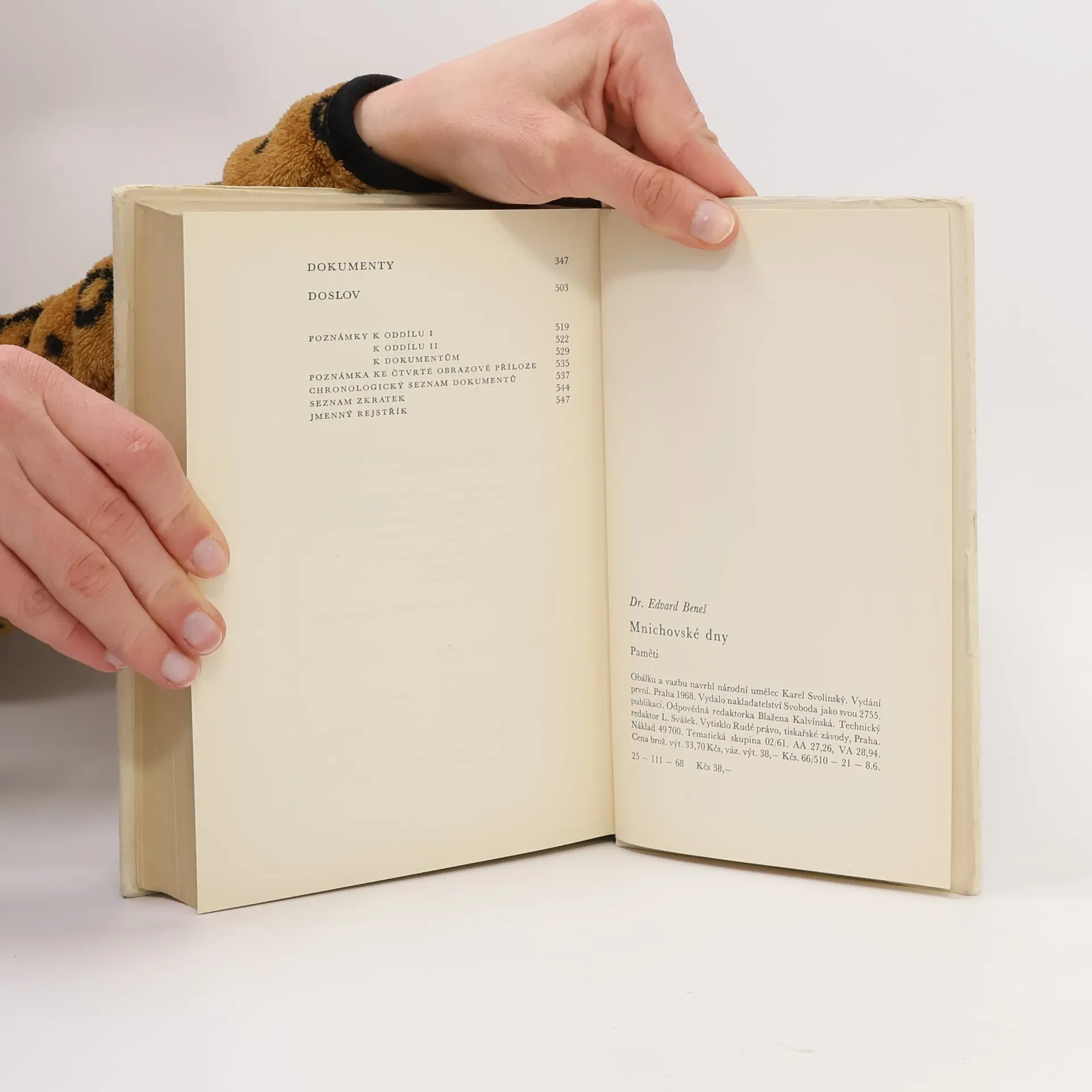 V historické literatuře se dnes hovoří o mnichovském komplexu dr. Beneše. Dr. Edvard Beneš si byl vědom své osobní odpovědnosti, a proto se k mnichovskému řešení ve své politické činnosti neustále vracel, promýšlel je a také je pro sebe i pro ostatní podrobně vylíčil. Šlo mu o to objasnit československou politiku, kterou jako president s vládou v roce 1938 a v letech předcházejících sledoval. Paměti dr. E. Beneše mají jistě svůj význam tím, že přinášejí řadu historických faktů, avšak především zaujmou způsobem výkladu a argumentace autora, jeho myšlenkovými pochody při hledání řešení situace, zejména v těch místech, kde píše o událostech, jichž byl přímým, a někdy dokonce jediným partnerským účastníkem, a o nichž nemohl tudíž nikdo jiný vědět víc… 25-111-68