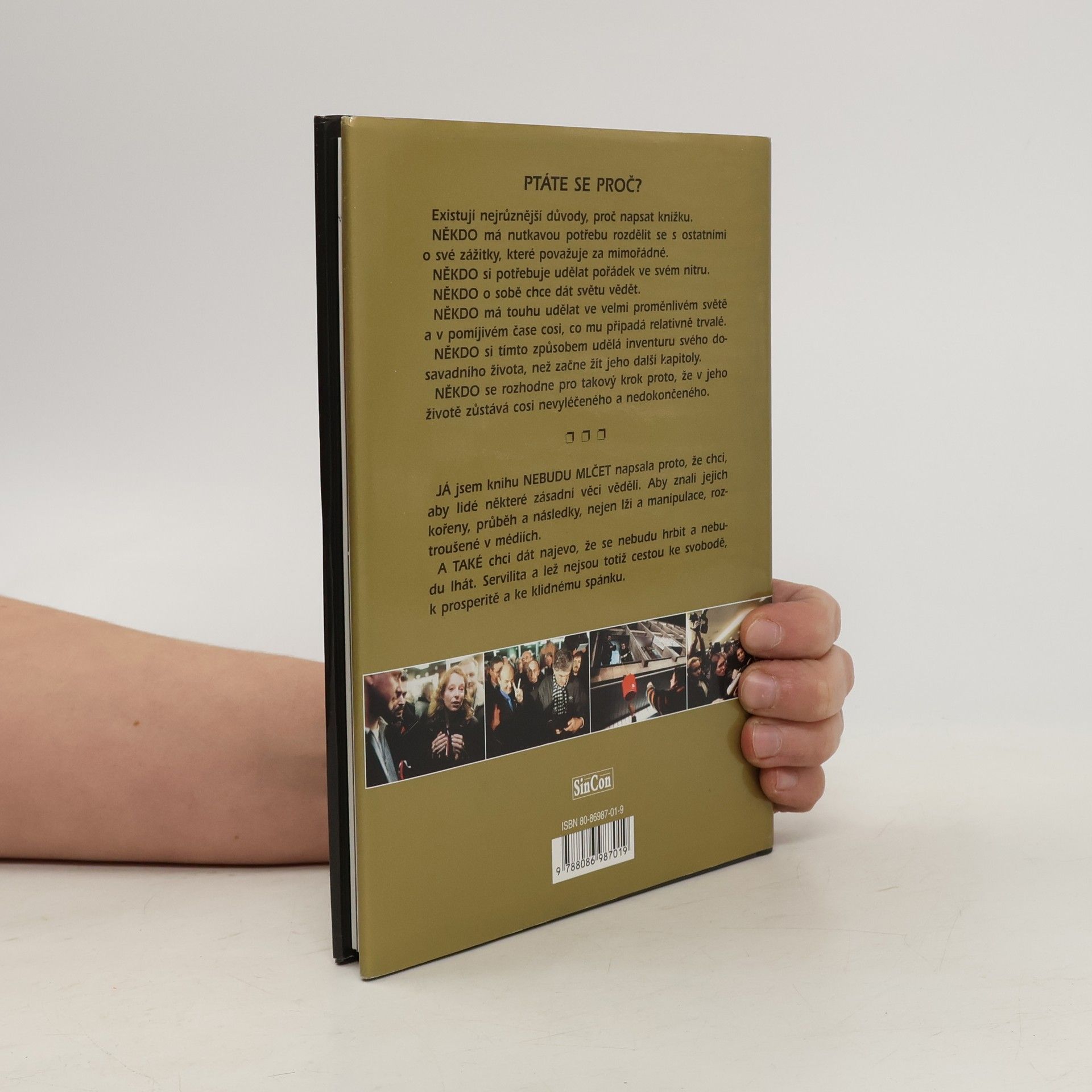 O televizní krizi, životě, politicích a lidech kolem nás. Knihu Nebudu mlčet napsala Jana Bobošíková proto, že chce, aby lidé některé zásadní věci věděli. Aby znali jejich kořeny, průběh a následky, nejen lži a manipulace, roztroušené v médiích. A také chce dát najevo, že se nebude hrbit a nebude lhát. Servilita a lež nejsou totiž cestou ke svobodě, k prosperitě a ke klidnému spánku.