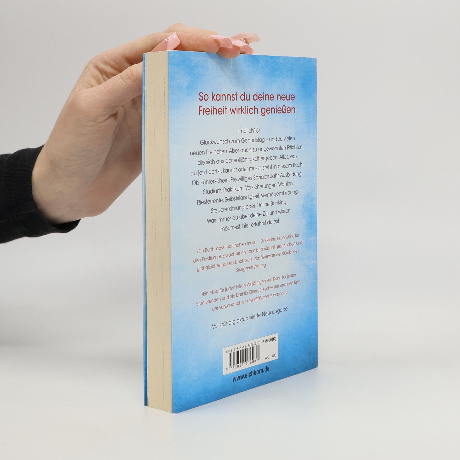 18! Glückwünsch zu vielen neuen Freiheiten. Aber auch zu Pflichten und Verantwortungen, die sich aus der Volljährigkeit ergeben. Alles, was du jetzt darfst, kannst oder muss, steht in diesem praktischen Ratgeber: Führerschein, Ausbildung und Freiwilliges Soziales Jahr, Studium oder der Weg ins Ausland, Versicherungen, Rentenplan oder Selbstständigkeit, Vermögensbildung, Steuererklärung oder Online-Banking: Was immer du über deine Zukunft wissen kannst, steht in diesem Buch.