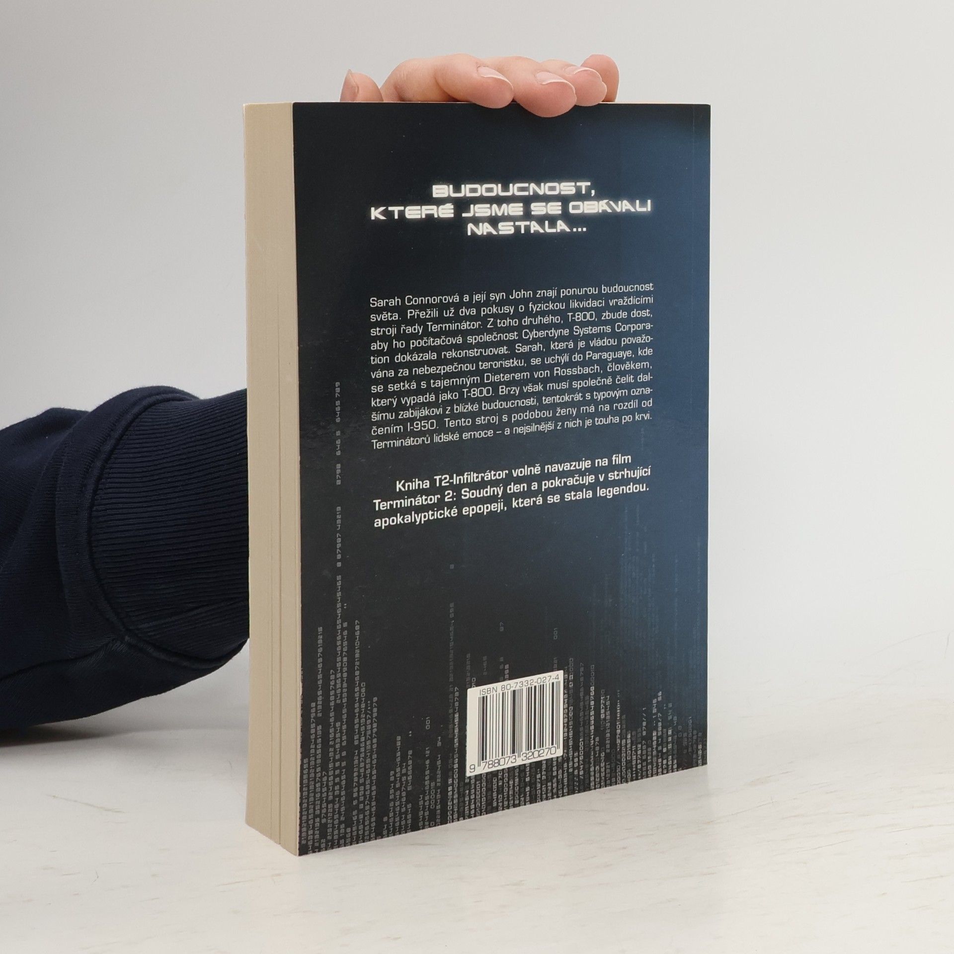 Sarah Connorová a její syn John znají ponurou budoucnost světa. Přežili už dva pokusy o fyzickou likvidaci vraždícími stroji řady Terminátor. Z toho druhého, T-800, zbude dost, aby ho počítačová společnost Cyberdyne Systems Corporation dokázala rekonstruovat. Sarah, která je vládou považována za nebezpečnou teroristku, se uchýlí do Paraguaye, kde se setká s tajemným Dieterem von Rossbachem, člověkem, který vypadá jako T-800. Brzy však musí společně čelit dalšímu zabijákovi z blízké budoucnosti, tentokrát s typovým označením I-950. Tento stroj s podobou ženy má na rozdíl od Terminátorů lidské emoce – a nejsilnější z nich je touha po krvi. Kniha T2: Infiltrátor volně navazuje na film Terminátor 2: Soudný den a pokračuje tak ve strhující apokalyptické epopeji, která se stala legendou…