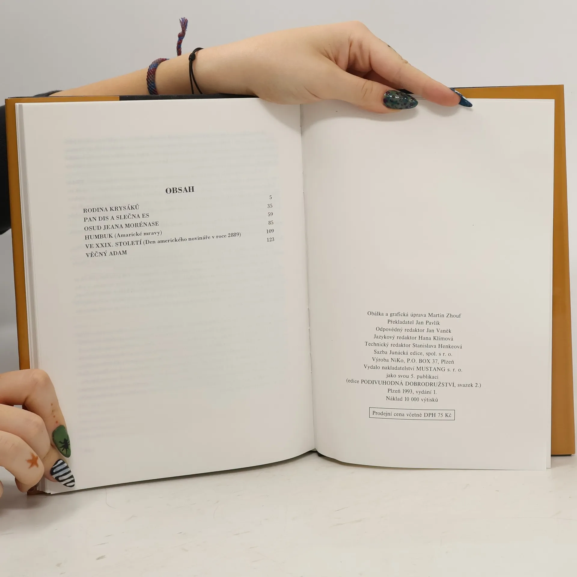 Šest méně známých povídek různého zaměření: Rodina Krysáků Pan Dis a slečna Es Osud Jeana Morénase Humbuk (americké mravy) Ve XXIX. století Věčný Adam