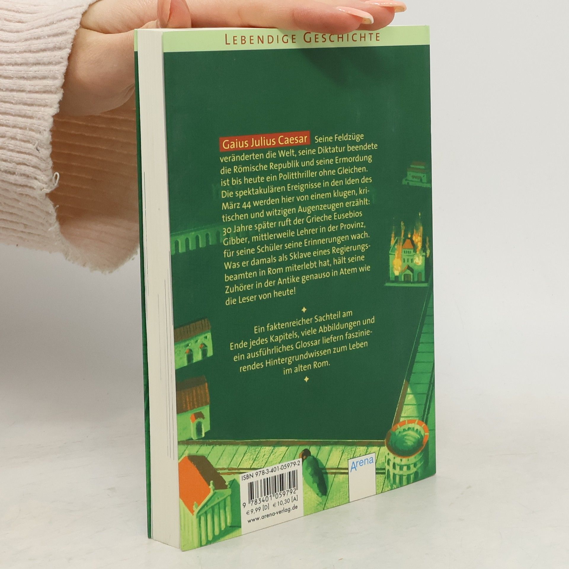 Seine Feldzüge veränderten die Welt, seine Diktatur beendete die Römische Republik, und seine Ermordung ist bis heute ein Politthriller ohne Gleichen: Gaius Julius Caesar, für viele der berühmteste Römer aller Zeiten. Die spektakulären Ereignisse in den berühmten Iden des März 44 werden hier von einem klugen, kritischen und witzigen Augenzeugen erzählt: 30 Jahre später ruft der Grieche Eusebios Gibber, mittlerweile Lehrer in der Provinz, für seine Schüler seine Erinnerungen wach. Was er damals als Sklave eines Regierungsbeamten in Rom miterlebt hat, hält seine Zuhörer in der Antike genauso in Atem wie die Leser von heute! Ein faktenreicher Sachteil am Ende jedes Kapitels, viele Illustrationen, und ein ausführliches Glossar runden die vielseitige Darstellung ab.
