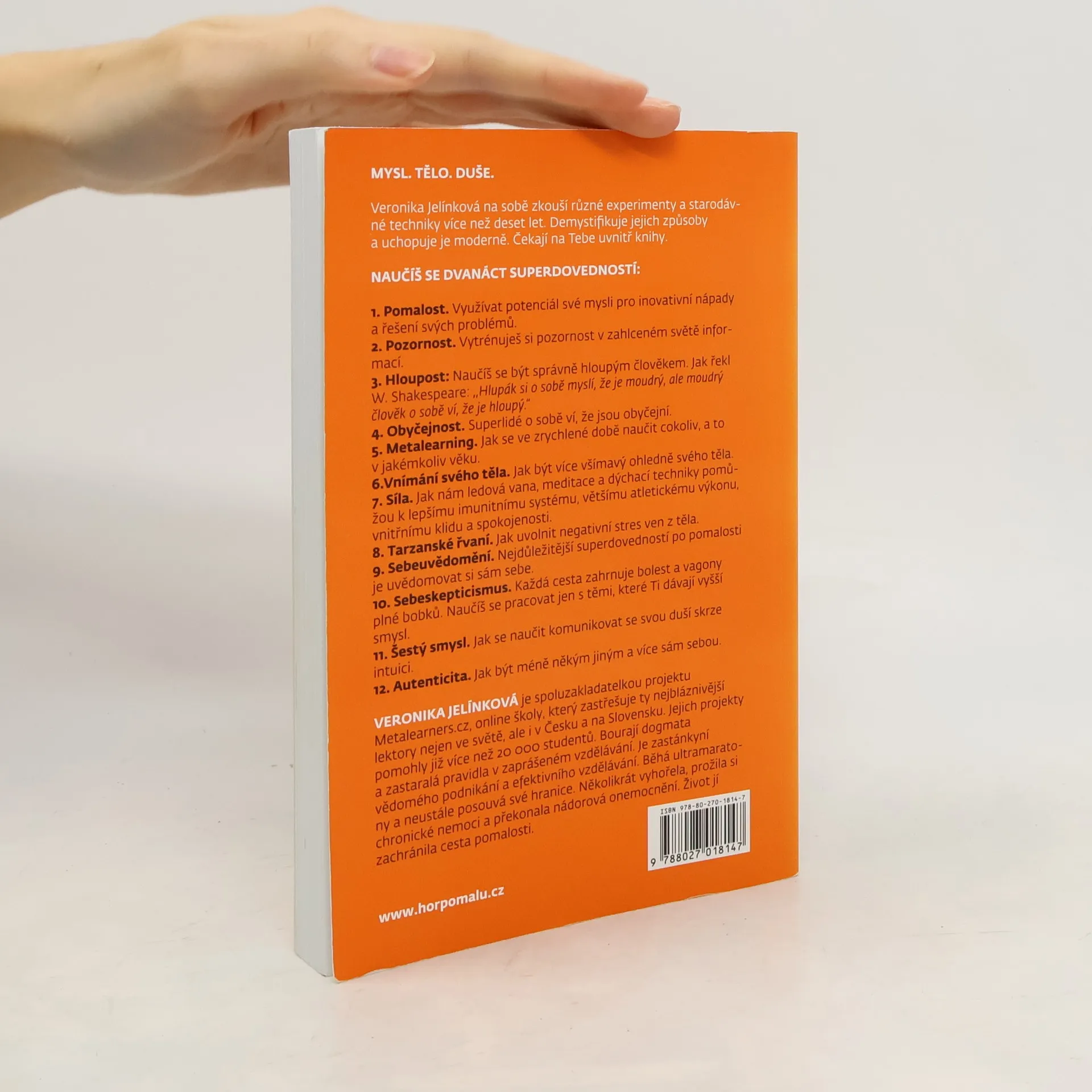Veronika Jelínková na sobě zkouší různé experimenty a starodávné techniky více než deset let. Demystifikuje jejich způsoby a uchopuje je moderně. Čekají na tebe uvnitř knihy.
