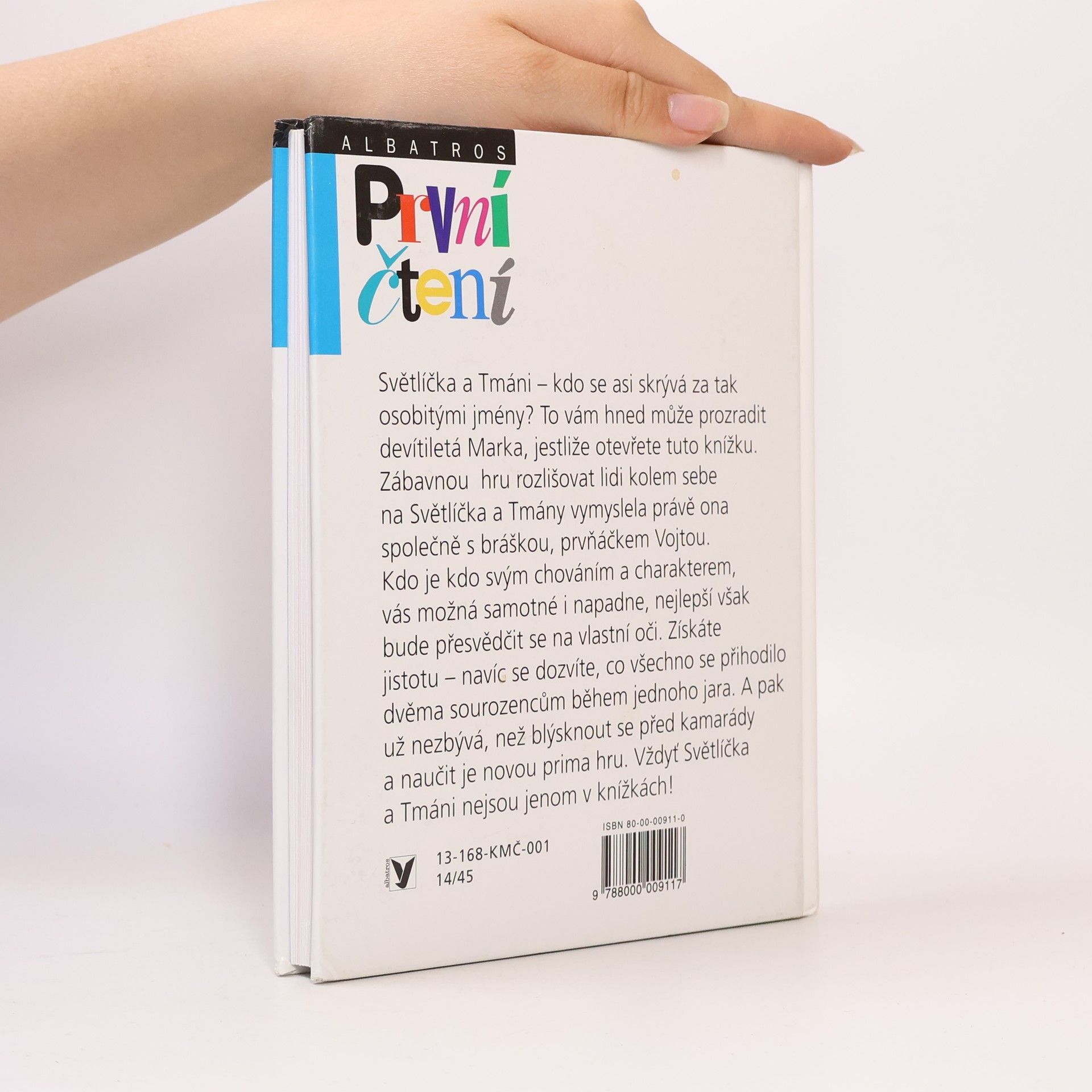 Světlíčka a Tmáni - kdo se asi skrývá za tak osobitými jmény? To vám hned může prozradit devítiletá Marka, jestliže otevřete tuto knížku. Zábavnou hru rozlišovat lidi kolem sebe na Světlíčka a Tmány vymyslela právě ona společně s bráškou, prvňáčkem Vojtou. Kdo je kdo svým chováním a charakterem, napadne možná i vás samotné, nejlepší však bude přesvědčit se na vlastní oči. Získáte jistotu - navíc se dozvíte, co všechno se přihodilo dvěma sourozencům během jednoho jara. A pak už nezbývá, než blýsknout se před kamarády a naučit je prima hru. Vždyť Světlíčka a Tmáni nejsou jenom v knížkách!