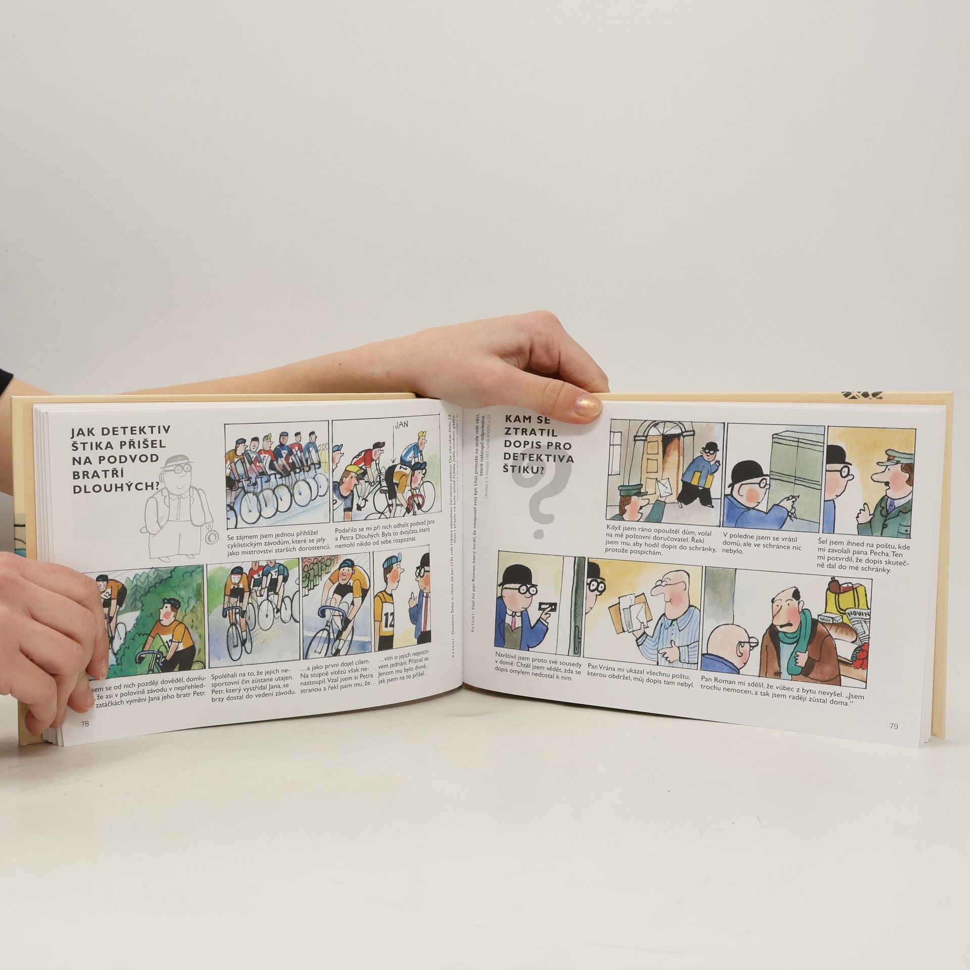 Otazníky detektiva Štiky patří mezi komiksy, které si oblíbilo hned několik generací čtenářů. Komiks o obtloustlém detektivovi, který řeší zapeklité případy, a úlohou čtenářů je odhalit jejich řešení, vycházel více než deset let v časopise Ohníček. Významný malíř Jiří Kalousek kreslil detektiva nejdřív černobíle, později i barevně. V naší knize je výběr z více než 350 komiksů, při výběru jsme se opírali především o dochované originály.