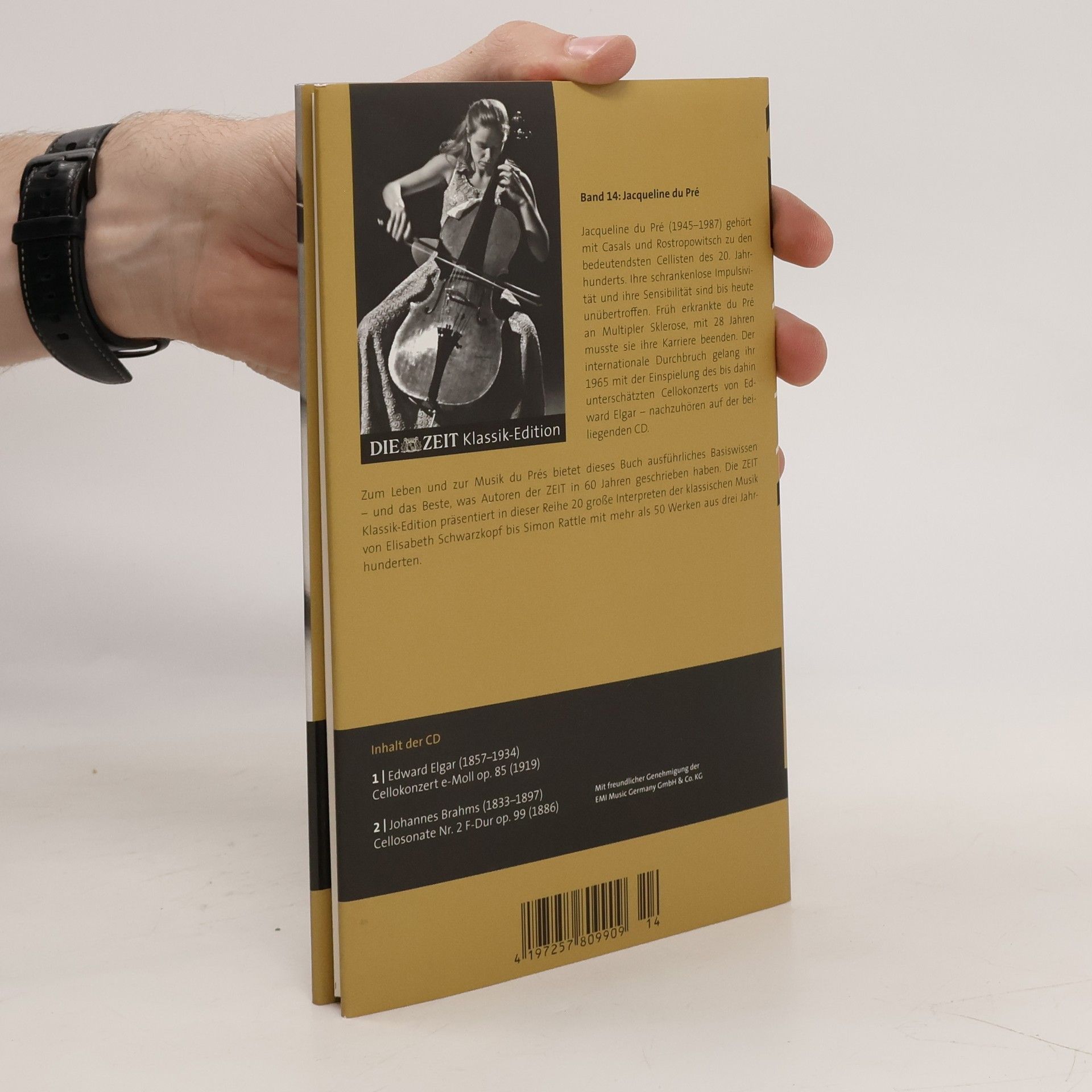 Legenden der klassischen Musik neu aufgelegt. Der Band inklusive CD präsentiert Jacqueline du Pré mit dem Cellokonzert von Edward Elgar in einer Aufnahme mit dem London Symphony Orchestra unter John Barbirolli. Die Cellosonate Nr. 2 von Johannes Brahms, in der die Virtuosin begleitet wird von Daniel Barenboim am Klavier, erweitert das Hörerlebnis. Die Aufnahmen wurden 1965 und 1968 eingespielt.