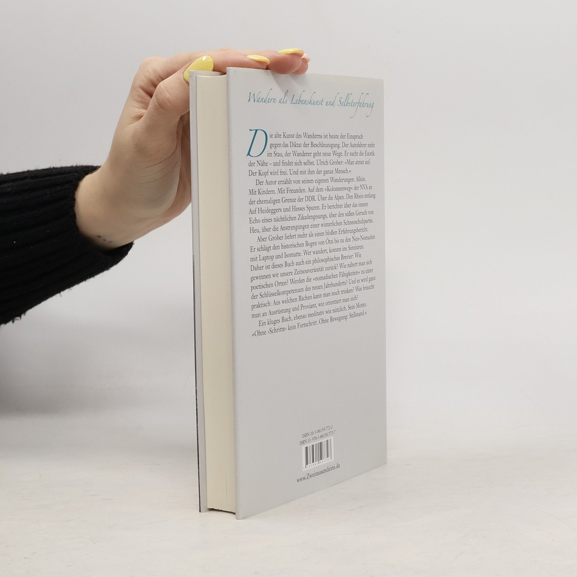 Wer immer ans Wandern denkt, wird dieses Buch gern lesen. Wandern als Lebenskunst und Selbsterfahrung. Die alte Kunst des Wanderns ist heute der Einspruch gegen das Diktat der Beschleunigung. Der Autofahrer steht im Stau, der Wanderer geht neue Wege. Er sucht die Exotik der Nähe - und findet sich selbst. Ulrich Grober: „Der Kopf wird frei. Und mit ihm der ganze Mensch“. Grober erzählt von seinen eigenen Wanderungen. Allein. Mit Kindern. Mit Freunden. Auf dem „Kolonnenweg“ der NVA an der ehemaligen Grenze der DDR oder den Rhein entlang. Über die Alpen. Auf Heideggers und Hesses Spuren. Er berichtet über das innere Echo eines nächtlichen Zikadengesangs, über den süßen Geruch von Heu, über die Anstrengungen einer winterlichen Schneeschuhpartie. Grober schlägt den Bogen von Ötzi bis zu den Neo-Nomaden mit Laptop und Isomatte. Sein Buch ist ein philosophisches Brevier: Wie gewinnen wir unsere Zeitsouveränität zurück? Werden die „nomadischen Fähigkeiten“ zu einer Schlüsselkompetenz des neuen Jahrtausends? Und es wird ganz praktisch: Aus welchen Bächen lässt sich noch trinken? Was braucht man an Ausrüstung und Proviant, wie orientiert man sich? Ein kluges Buch, ebenso meditativ wie nützlich. Sein Motto: „Ohne Schritte kein Fortschritt. Ohne Bewegung: Stillstand.“