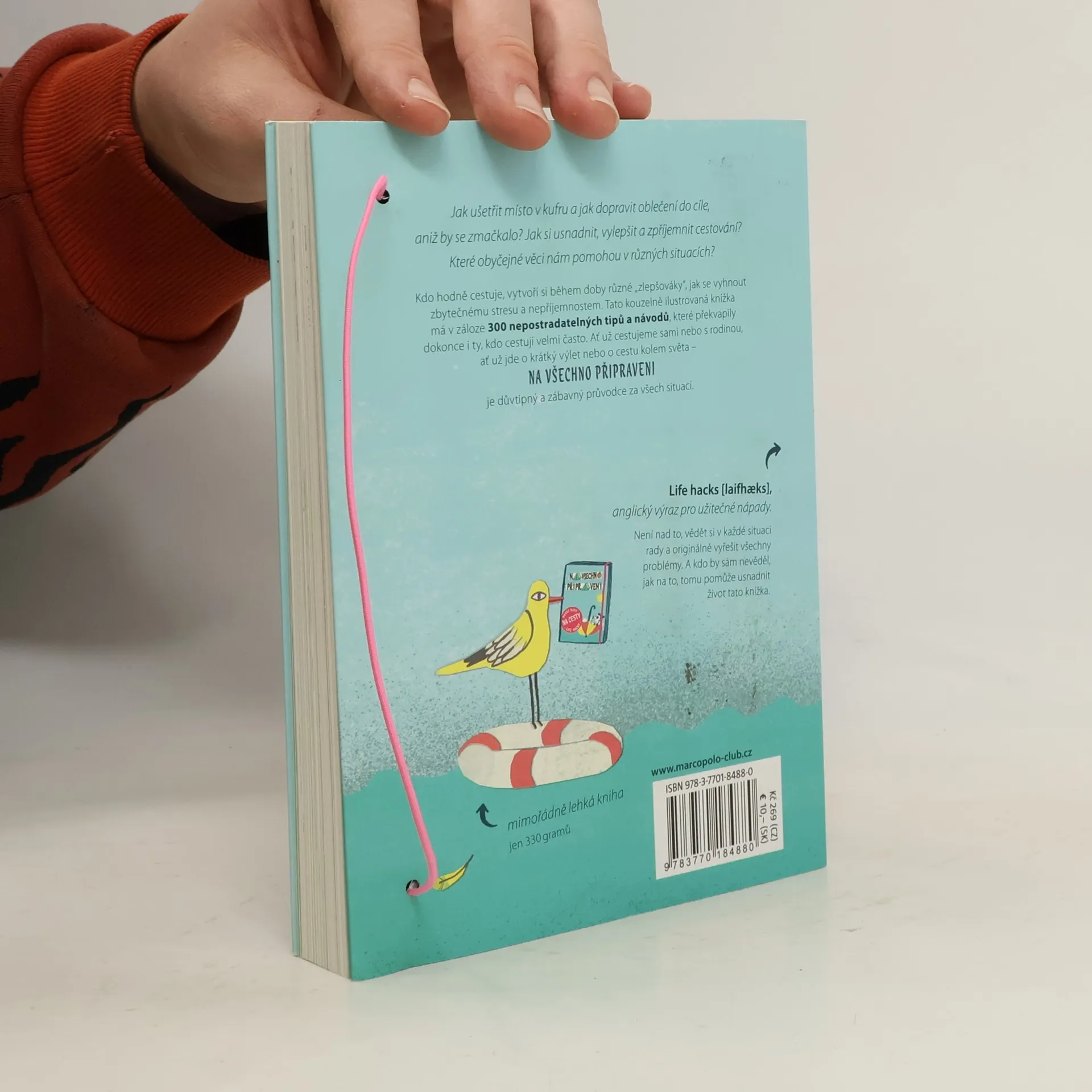 Jak se může stát, že gumička do vlasů zachrání celou dovolenou? Odpověď je jednoduchá: většinou to, co nás rozčílí, není tragédie, ale maličkost. Gumička do vlasů a další běžné předměty nabízejí celou řadu užitečných tipů a rad. S trochou dovednosti můžeme například bezpečně upevnit navigaci v autě, uchovat nakrájené jablka čerstvé nebo vytvořit improvizovaný stativ. Zkušené cestovatele jsme se ptali, jak si usnadnit a zpříjemnit cestování, a shromáždili jsme 300 užitečných tipů, které překvapily i časté cestovatele. Tato sbírka nabízí nápady, jak si poradit v různých situacích, od balení kufrů po navazování kontaktů. Mezi oblíbené předměty patří gumička do vlasů, šátek pareo, kancelářský klip a lepicí páska. Na čtyři z nich se zaměřujeme podrobněji a vysvětlujeme, proč bychom se bez nich neměli vydávat na cesty. Speciální rubrika „10 důvodů, proč…“ poskytuje další důvody pro jejich užitečnost. V knize také najdeme moudré a veselé rady od známých autorů jako Kurt Tucholsky a Johann Wolfgang Goethe, které jsou doplněny půvabnými ilustracemi. Našich 300 tipů a nápadů připraví každého cestovatele na vše, co ho na cestách může potkat.