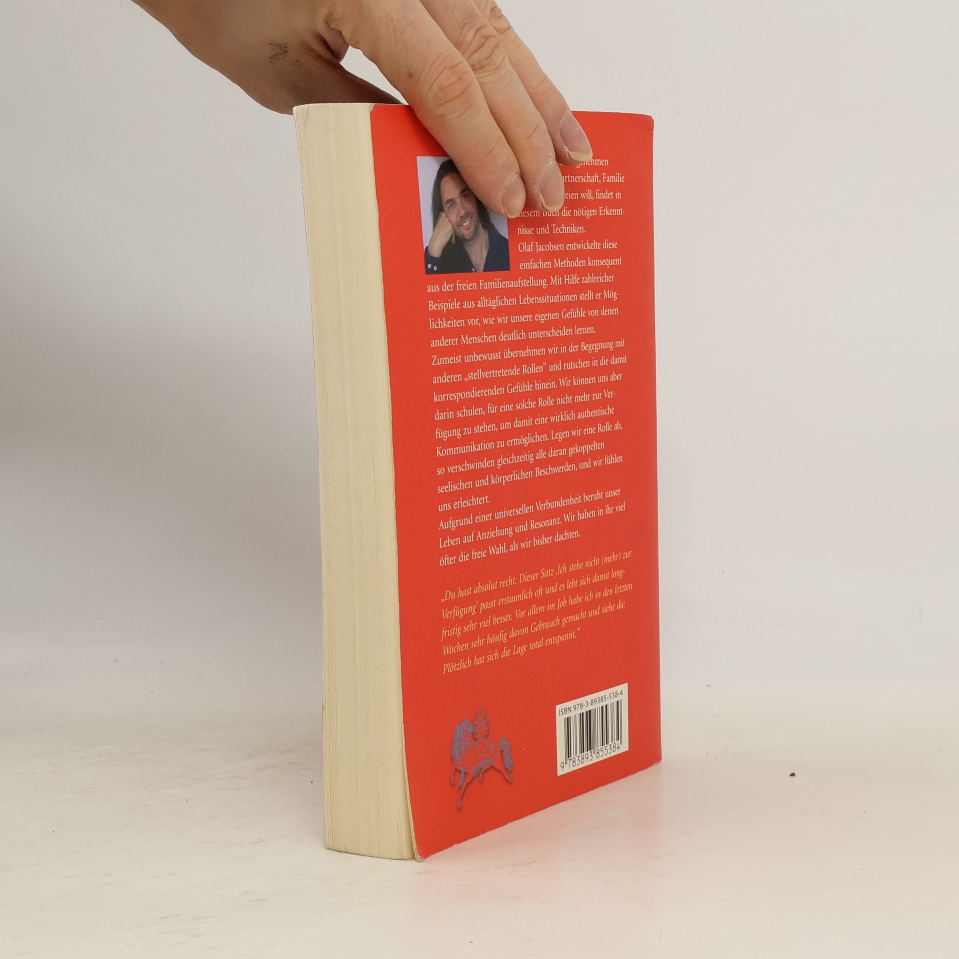 Wer sich von unangenehmen Gefühlen in Partnerschaft, Familie und Beruf befreien will, findet in diesem Buch die nötigen Erkenntnisse und Techniken. Olaf Jacobsen entwickelte diese einfachen Methoden konsequent aus der freien Familienaufstellung. Mit Hilfe zahlreicher Beispiele aus alltäglichen Lebenssituationen stellt er Möglichkeiten vor, wie wir unsere eigenen Gefühle von denen anderer Menschen deutlich unterscheiden lernen. Zumeist unbewusst übernehmen wir in der Begegnung mit anderen „stellvertretende Rollen“ und rutschen in die damit korrespondierenden Gefühle hinein. Wir können uns aber darin schulen, für eine solche Rolle nicht mehr zur Verfügung zu stehen, um damit eine wirklich authentische Kommunikation zu ermöglichen. Legen wir eine Rolle ab, so verschwinden gleichzeitig alle daran gekoppelten seelischen und körperlichen Beschwerden, und wir fühlen uns erleichtert. Aufgrund einer universellen Verbundenheit beruht unser Leben auf Anziehung und Resonanz. Wir haben in ihr viel öfter die freie Wahl, als wir bisher dachten. Kerstin aus Berlin: „Du hast absolut recht. Dieser Satz “Ich stehe nicht (mehr) zur Verfügung„ passt erstaunlich oft und es lebt sich damit langfristig sehr viel besser. Vor allem im Job habe ich in den letzten Wochen sehr häufig davon Gebrauch gemacht und siehe da: Plötzlich hat sich die Lage total entspannt.“