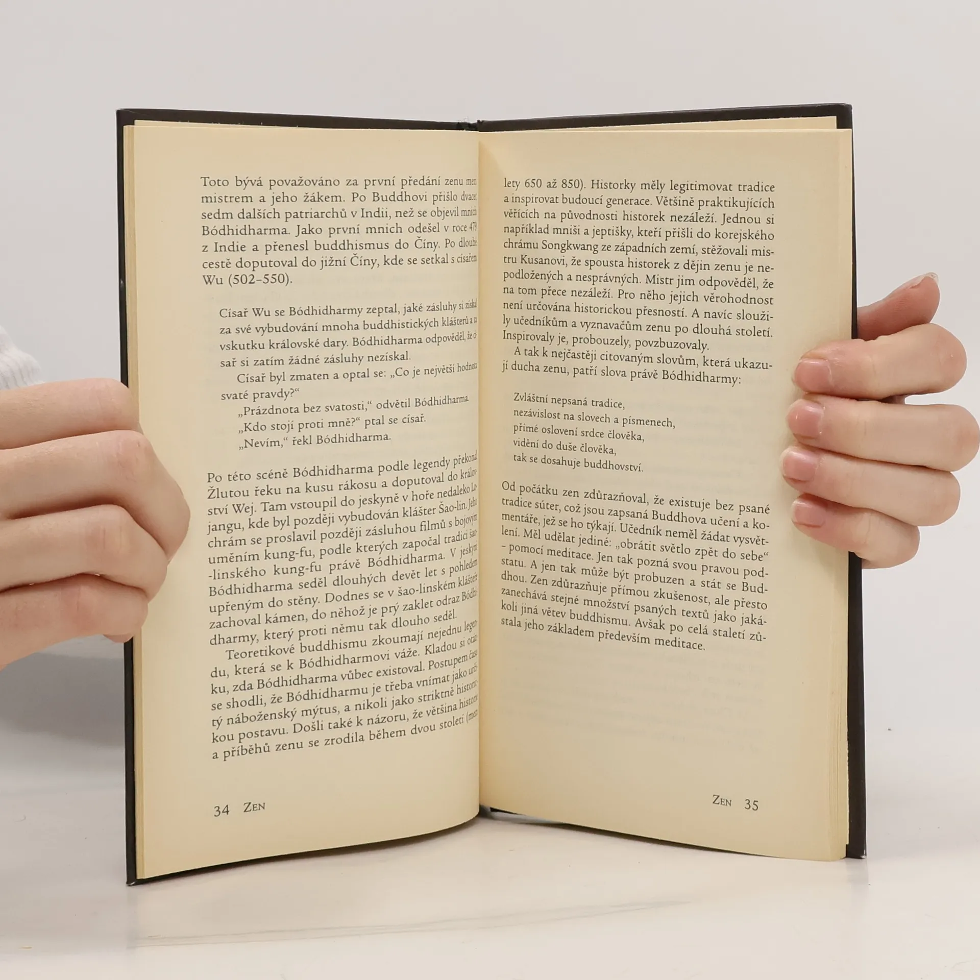 Praktický průvodce o původu a zásadách „zenu“ přináší mnoho užitečných rad všem lidem, kteří se zajímají a snaží o prohloubení svého života pomocí cvičení a meditace. Nauka „zenu“ je v moderní době velmi populární, inspirovala mnoho umělců, spisovatelů i básníků. Tato cvičení zklidnění mysli jsou vhodná i pro člověka, kterému je východní tradice ideálu osvíceného bytí vzdálená. Slovo zen pochází ze sanskrtského slova „dhyana“, které znamená stav niterného pohroužení podle buddhistické tradice. Když se buddhismus rozšířil z Indie do Číny, vzniklo slovo „chan“, které se v Koreji vyslovuje jako „son“ a v Japonsku „zen“. Přestože má zen mnoho různých modifikací a aspektů, jeho základem vždy zůstává prožitek vnitřního poznání našeho spojení s celým světem.