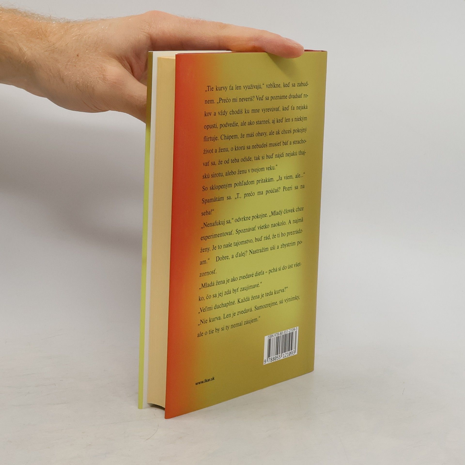 Kniha zachytáva emocionálny vývoj hlavného hrdinu, balansujúceho medzi zodpovednosťou a slobodou. Tínedžer z malého mesta sa stane milencom staršej ženy. Anonymná T. stráži život svojho gigola, ale dovolí mu, aby si rozohral aj iné partie - raz srdca, raz vášne. Vzťahy s neprávnymi ženami však vedú mladíka do záhuby...