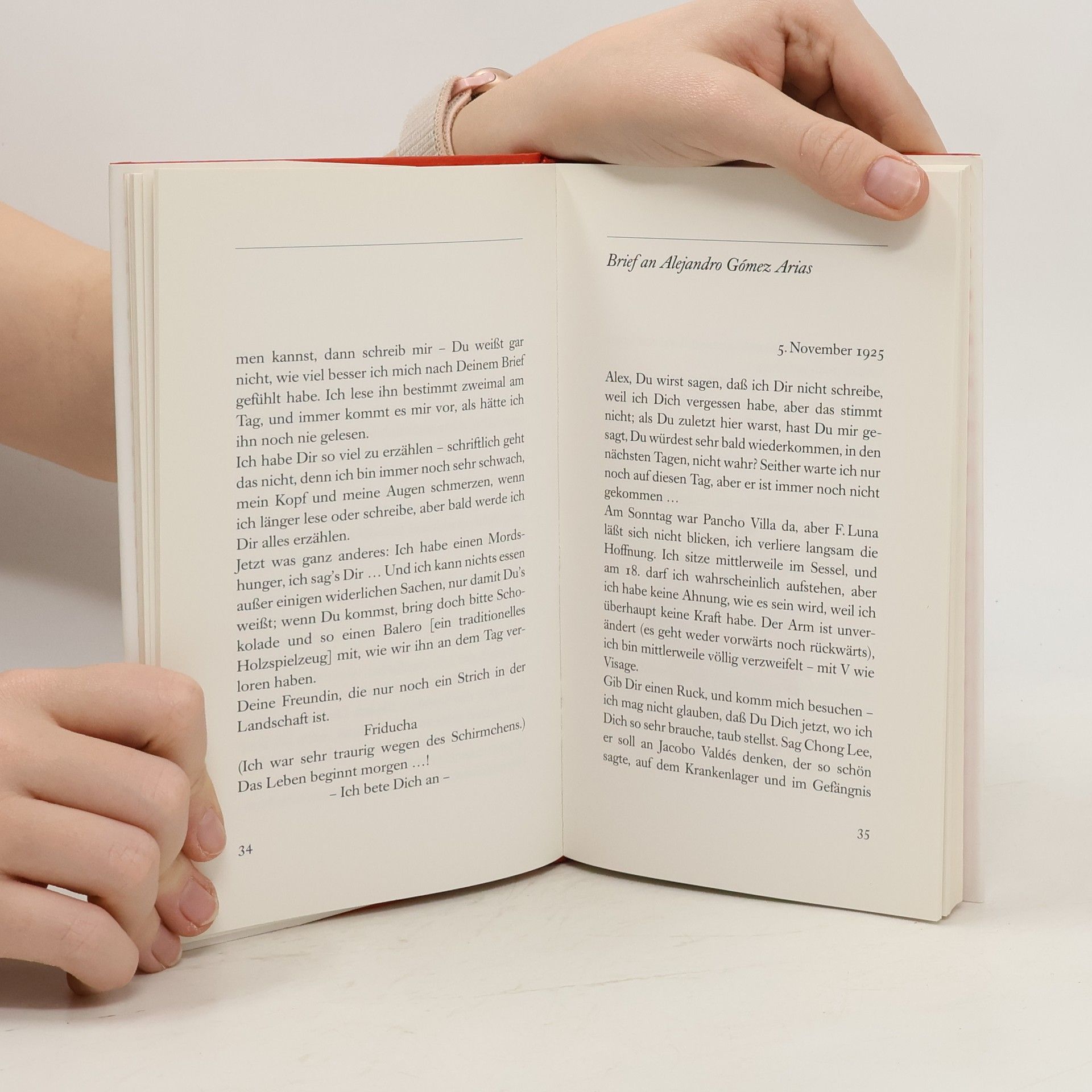Eine Auswahl der schönsten Liebesbriefe, die Frida Kahlo an ihre Jugendliebe Alejandro Gómez Arias, an ihren Mann Diego Rivera und ihre große Liebe, den Photographen Nickolas Muray geschrieben hat – jetzt in einer Neuauflage der 2004 erschienenen bibliophilen Ausgabe. Briefe, die ähnlich wie die Bilder der großen mexikanischen Künstlerin zeigen, dass sie „ihr Herz auf der Zunge trägt“.