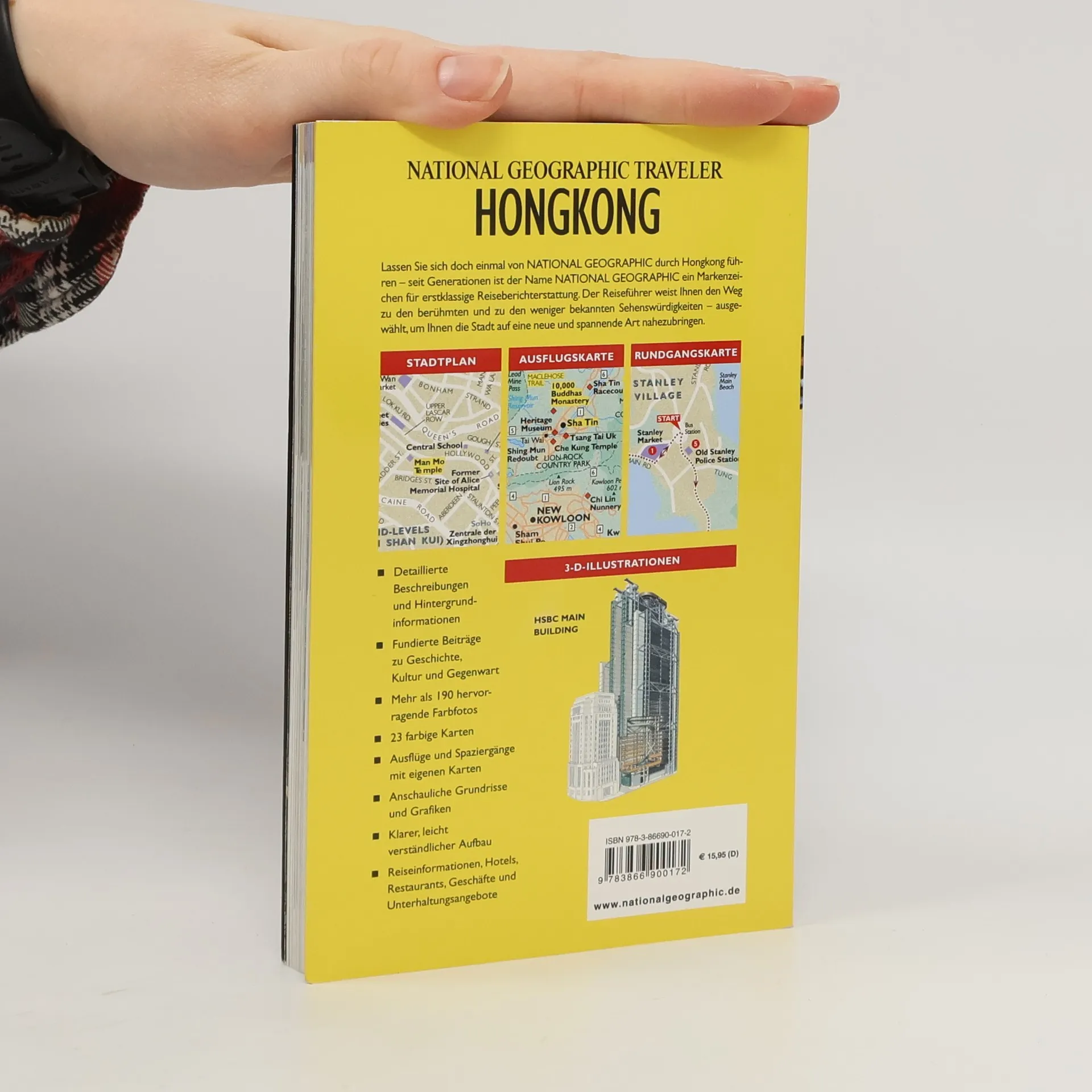 Tag für Tag sind die Reise-Experten von NATIONAL GEOGRAPHIC auf allen Kontinenten der Erde unterwegs. Sie tauchen ein in die Kultur und Geschichte, sie blicken hinter die Kulissen eines Landes und entdecken, was die Menschen dort wirklich bewegt. Und sie geben ihre faszinierenden Erfahrungen weiter — in einem neuartigen Reiseführer, dem NATIONAL GEOGRAPHIC TRAVELER. Die Reise planen Ein erster Überblick zu Beginn der Kapitel hilft bei der Auswahl der eigenen Touren durch Hongkong – ganz nach persönlichen Wünschen. Insidertipps NATIONAL GEOGRAPHIC-Autoren, -Fotografen, Travel-Experten und Kenner der örtlichen Szene geben praktische Empfehlungen. Reizvolle Sehenswürdigkeiten Genießen Sie den Blick auf Hongkongs nächtliche Skyline vom Victoria Peak, machen Sie eine Hafenrundfahrt an Bord einer Dschunke und gehen Sie auf Schnäppchenjagd auf dem Temple Street Night Market. Ungewöhnliche Ausflugsziele Entdecken Sie den Charme der umgebenden Inselwelt und erkunden Sie das portugiesische Erbe Macaus. Oder wie wäre es mit einer Wanderung auf dem Ping Shan Heritage Trail in den New Territories? Nicht versäumen Die spezielle Rubrik fehlt in keinem Kapitel und weist auf Top-Attraktionen und außergewöhnliche Angebote hin.