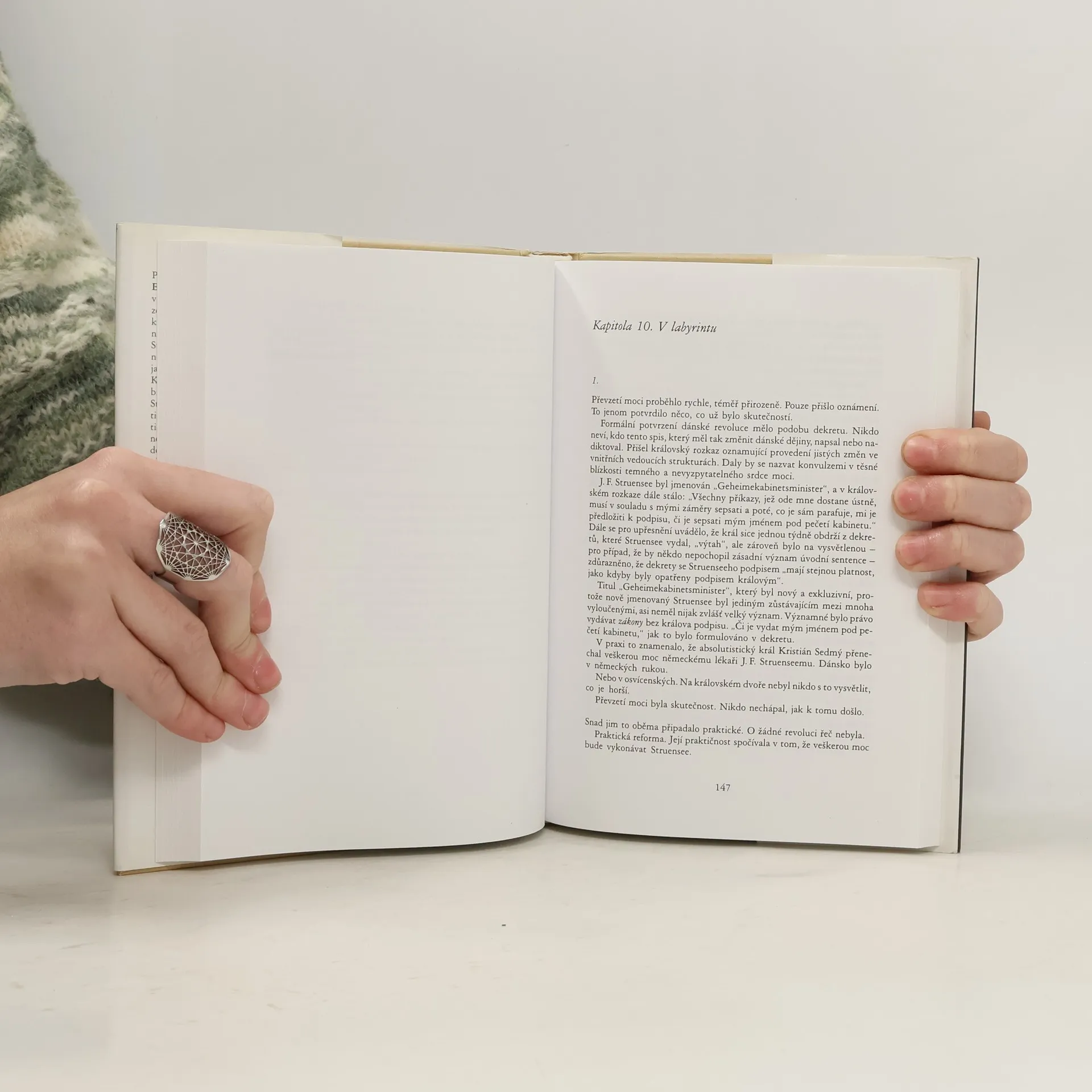 Dějištěm zajímavého románu, který byl napsán podle historických reálií, je dánský královský dvůr a jeho tématem jsou mocenské intriky za vlády Kristiána VII. „Struenseeho doba“ se nazývá období, v kterém na dvoře dánského krále Kristiána VII. působil německý lékař Johann Friedrich Struensee. Ke Kristiánovi byl povolán, když se naplno začalo projevovat královo šílenství. Mezi králem a jeho osobním lékařem se vyvinul úzký vztah plný důvěry, a tak se Struensee brzy stal nejvlivnějším mužem na dánské politické scéně. Byl přívržencem osvícenských myšlenek, které se snažil realizovat v praxi. Během dvou let bylo vydáno 632 revolučních dekretů, mezi které patřila například svoboda vyznání, neomezená svoboda tisku, reforma zdravotnictví a další. Struensee udržoval poměr s královnou Karolínou Matyldou a z tohoto vztahu se narodila dcera. Struenseeho moc a vztah s královnou byl trnem v oku dalším mocenským skupinám kolem krále, a tak byl Struensee pod záminkou připravované královraždy v roce 1772 odsouzen k smrti a popraven. Revoluce, kterou začal, byla rychle zrušena a vše se vrátilo ke starým pořádkům.