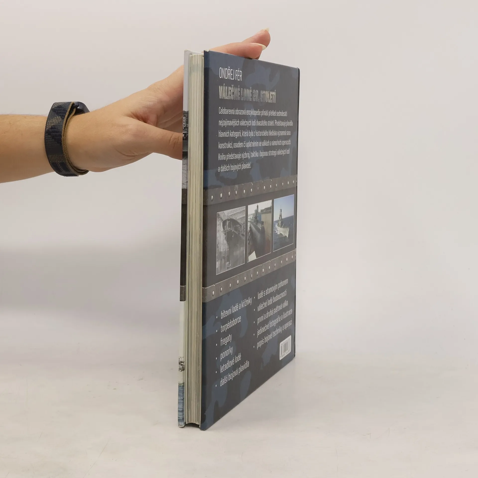 Encyklopedie nejvýznamnějších válečných plavidel. Celobarevná obrazová encyklopedie přináší přehled sedmdesáti nejzajímavějších válečných lodí dvacátého století. Představuje plavidla hlavních kategorií, která byla z historického hlediska významná svou konstrukcí, osudem či uplatněním ve válkách a námořních operacích. Kniha představuje výzbroj, taktiku i bojovou strategii válečných lodí a dalších bojových plavidel. bitevní lodě a křižníky torpédoborce fregaty ponorky letadlové lodě další bojová plavidla první a druhá světová válka lodě s atomovým pohonem válečné lodě budoucnosti.